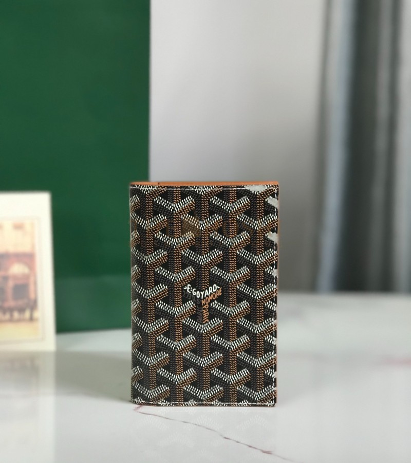 GOYARD BIFOLD CARD HOLDER WALLET BROWN & BLACK GOYARDINE CANVAS LEATHER MASTER QUALITY