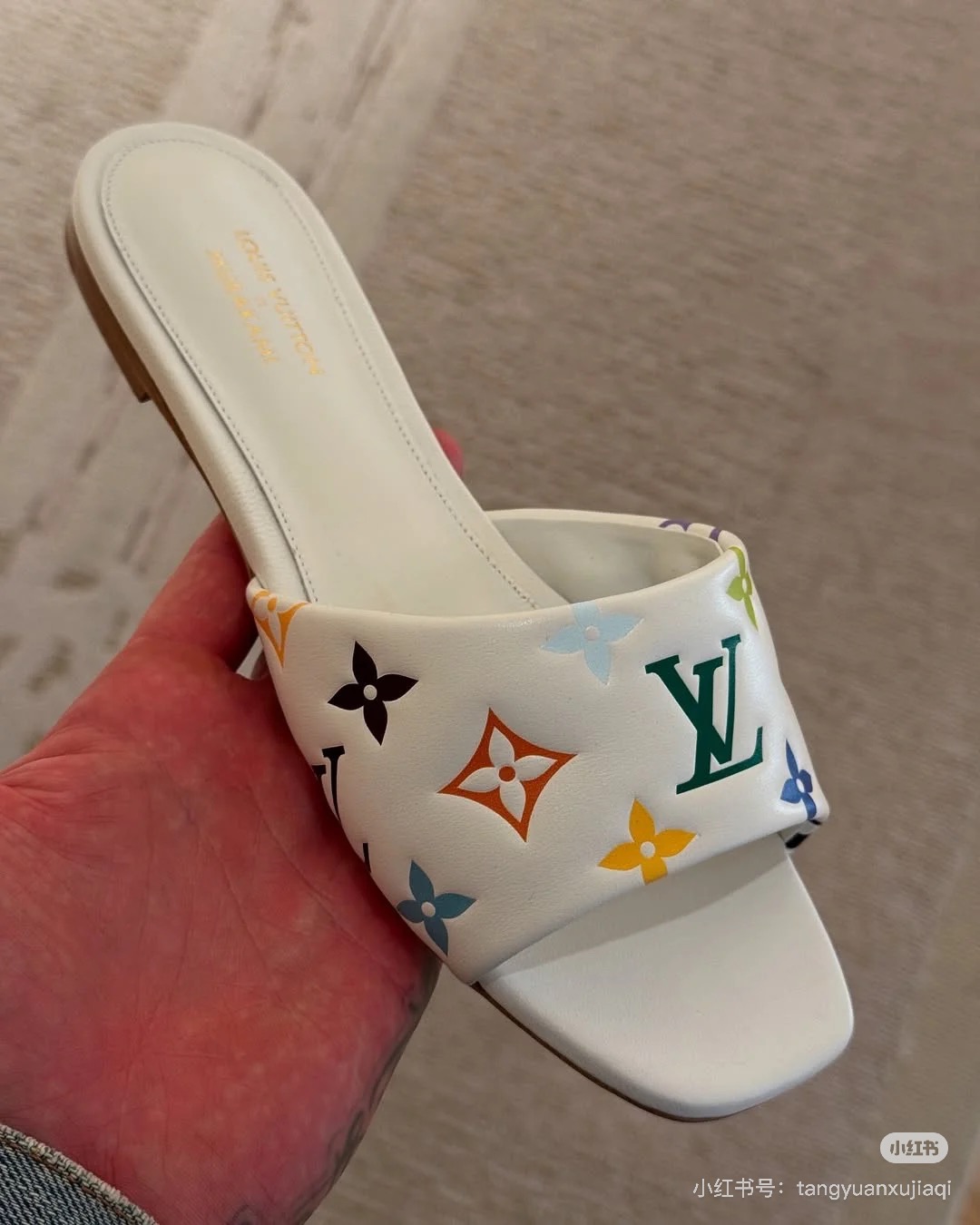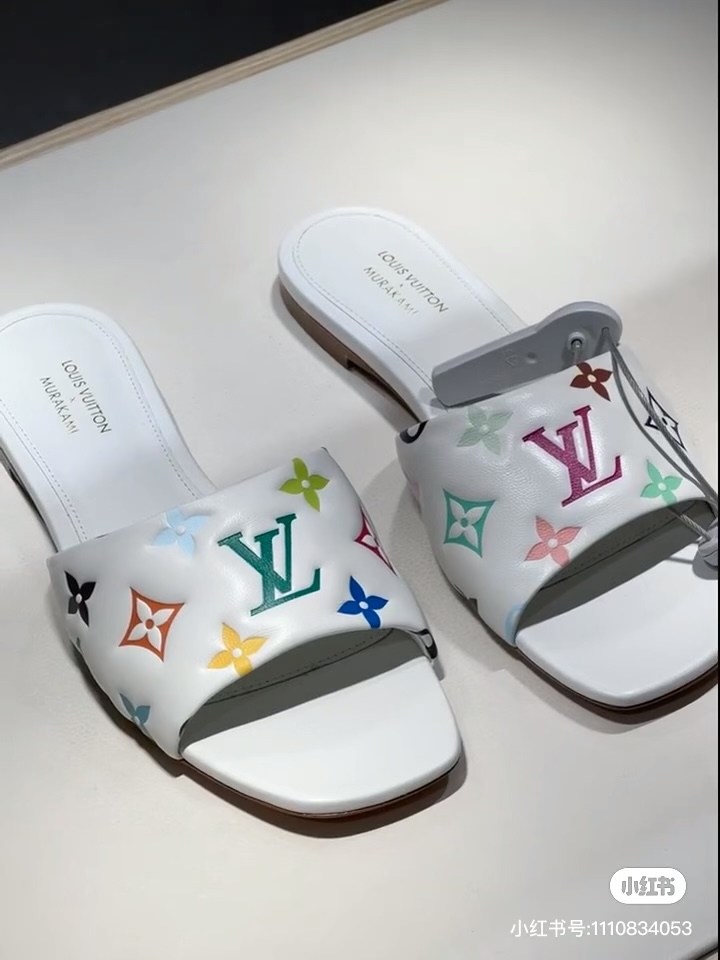 LOUIS VUITTON LV X TAKASHI MURAKAMI SLIDE SANDALS WHITE MULTICOLOR MONOGRAM MASTER QUALITY