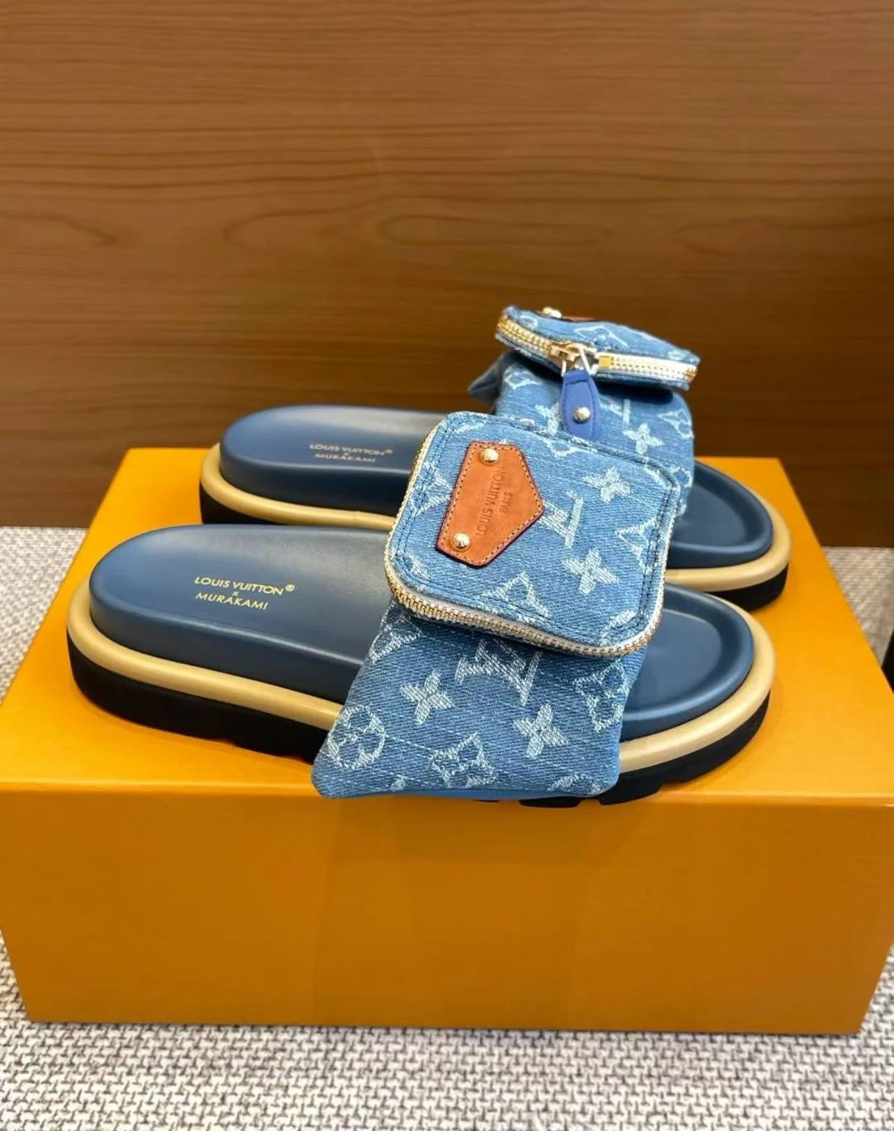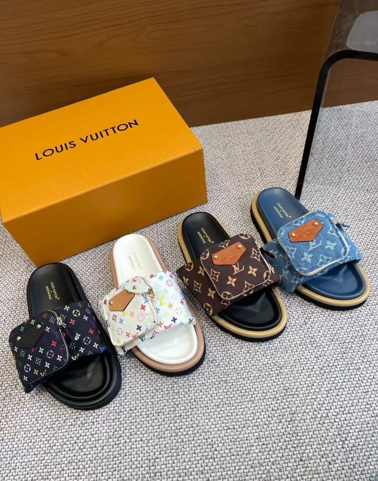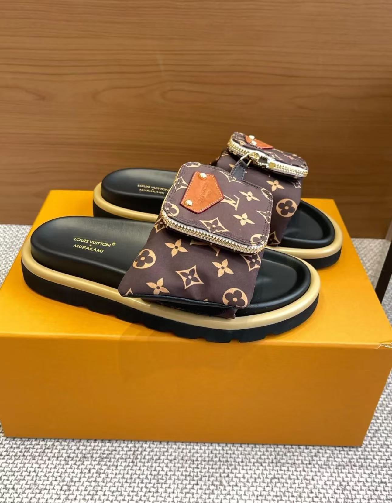 LOUIS VUITTON MONOGRAM SLIDES WITH MINI POUCH LV SANDALS MASTER QUALITY
