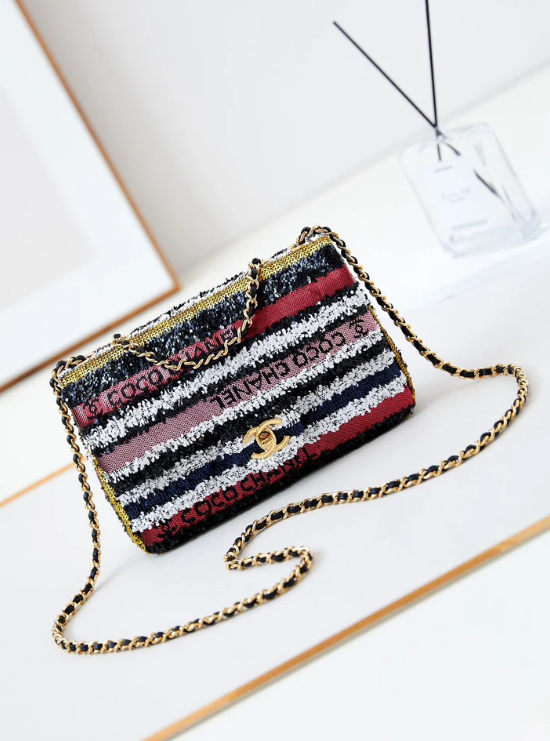 SEQUIN COCO CLUTCH WITH CHAIN BLACK RED CHANEL BAG MASTER QUALITY