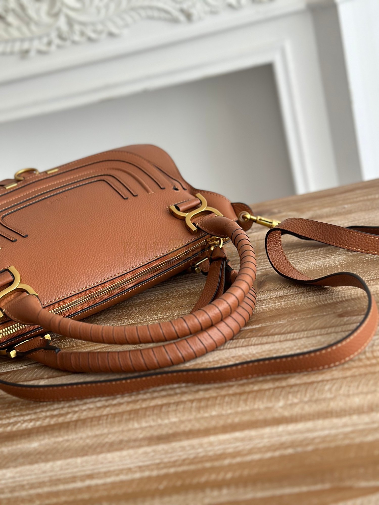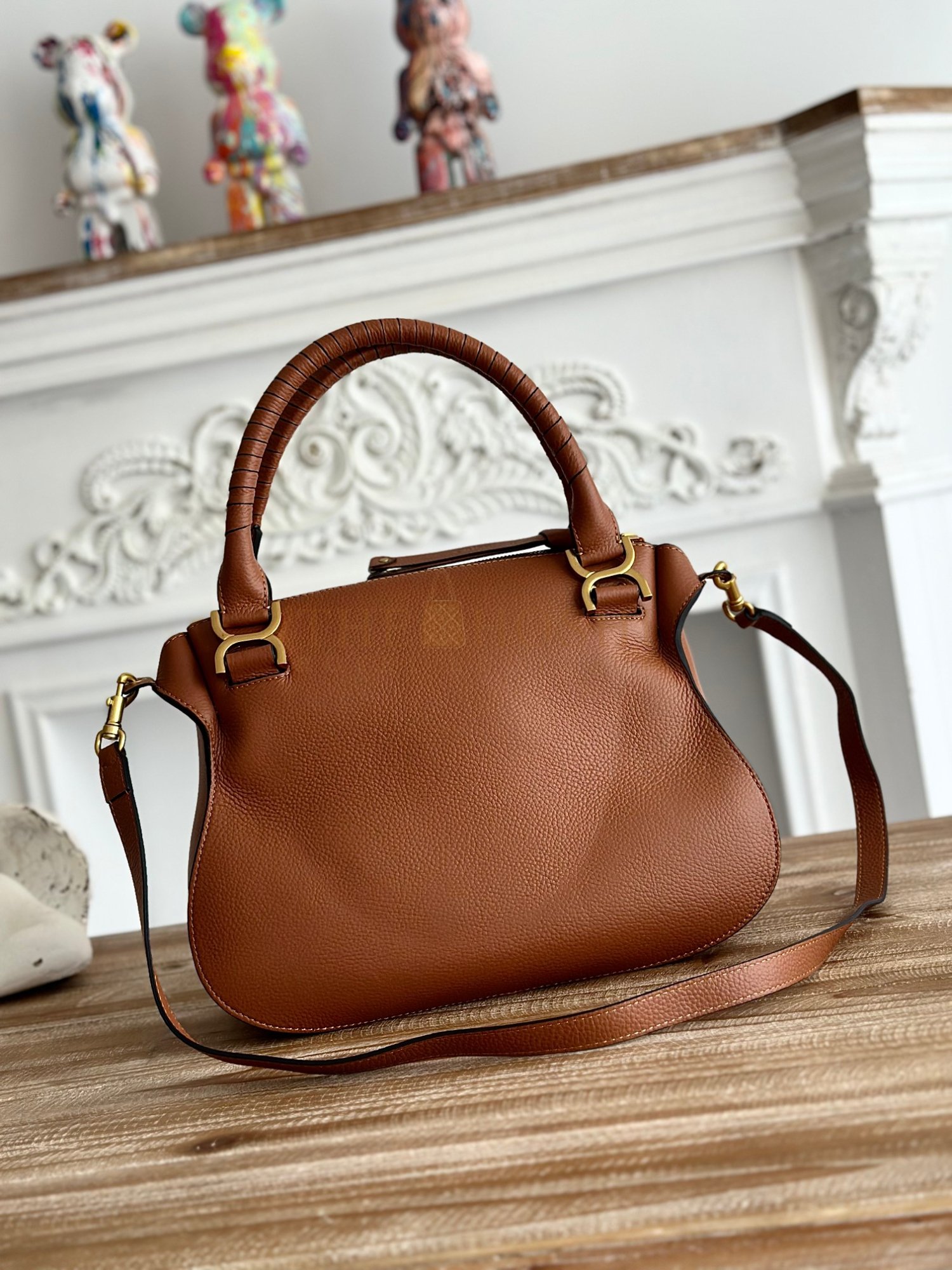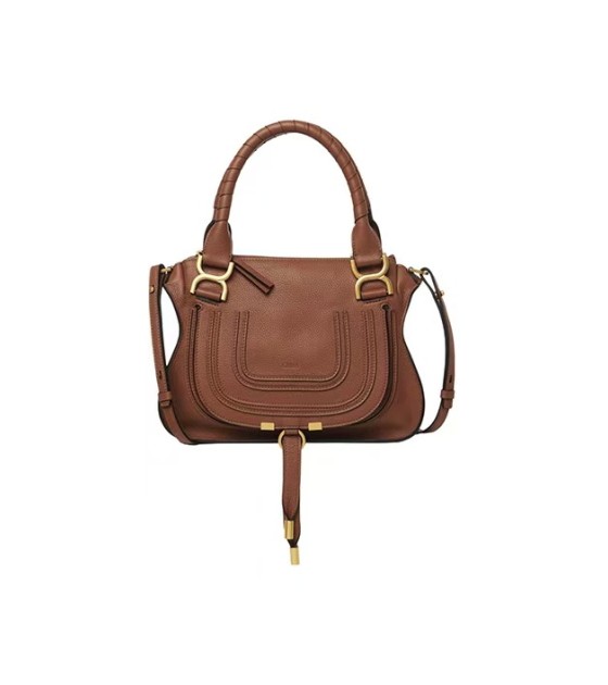 CHLOE MARCIE SMALL DOUBLE CARRY BAG IN BROWN GRAINED LEATHER MASTER QUALITY