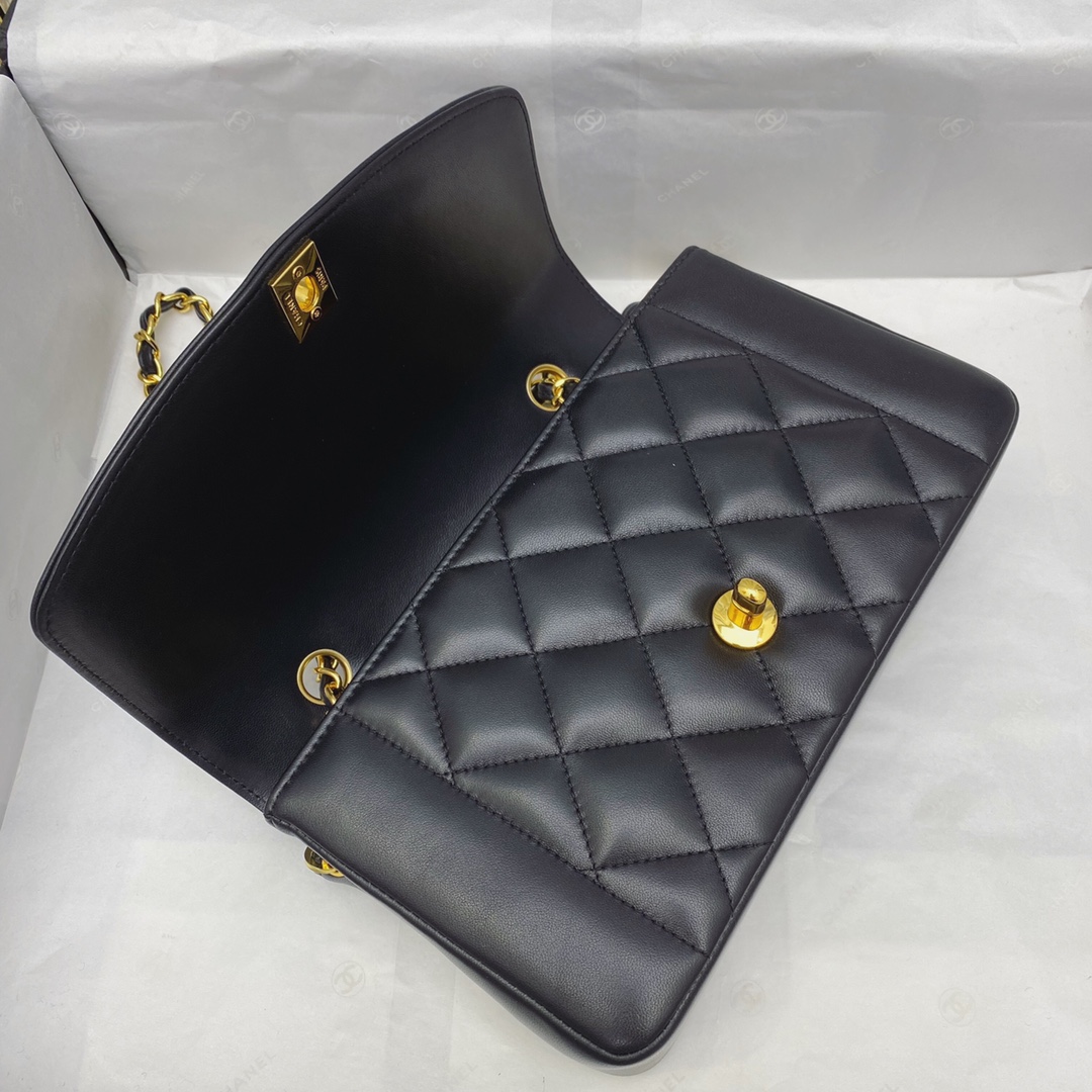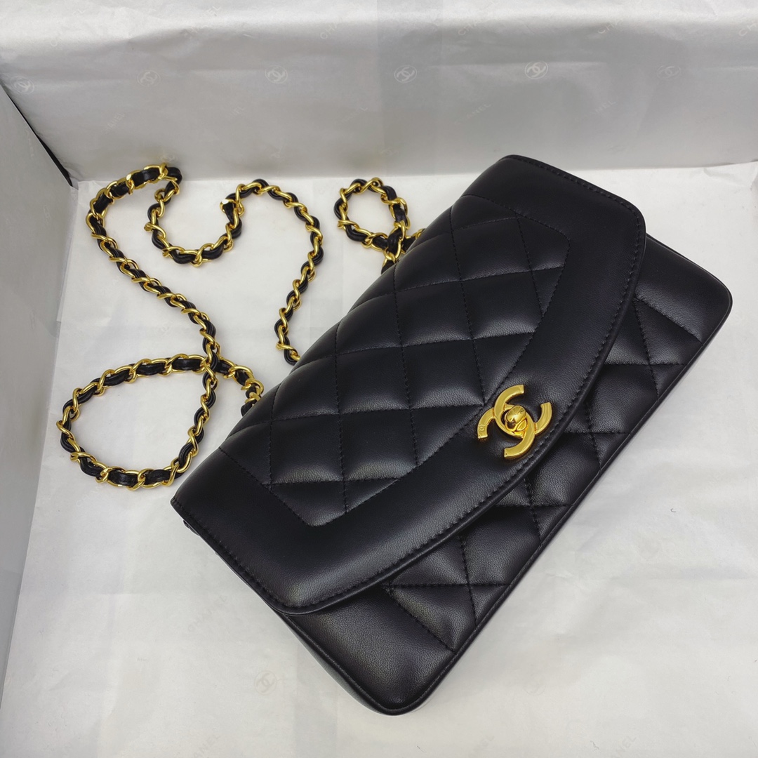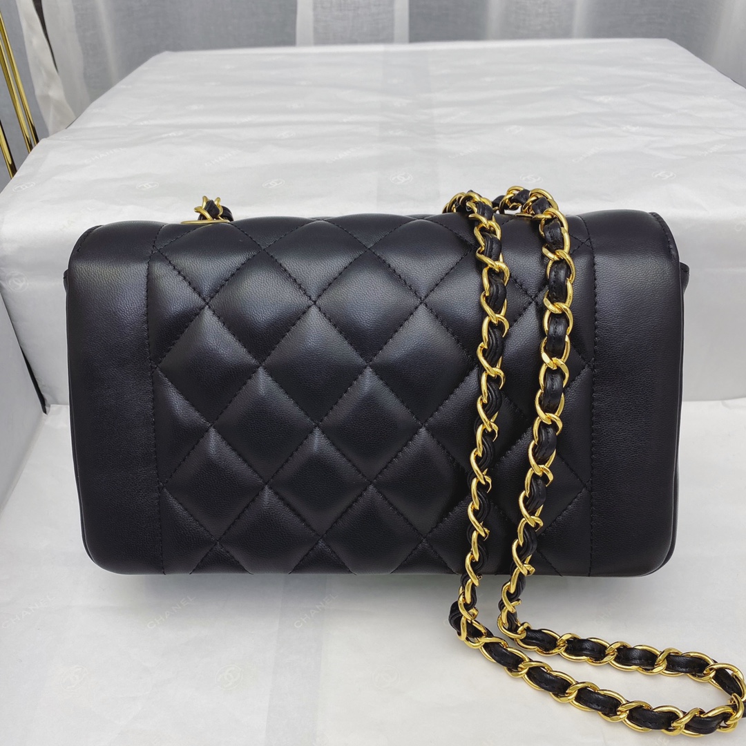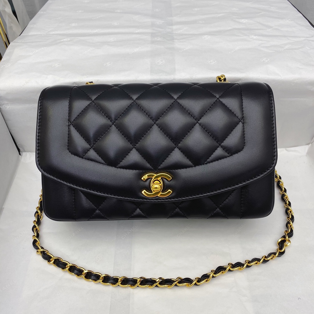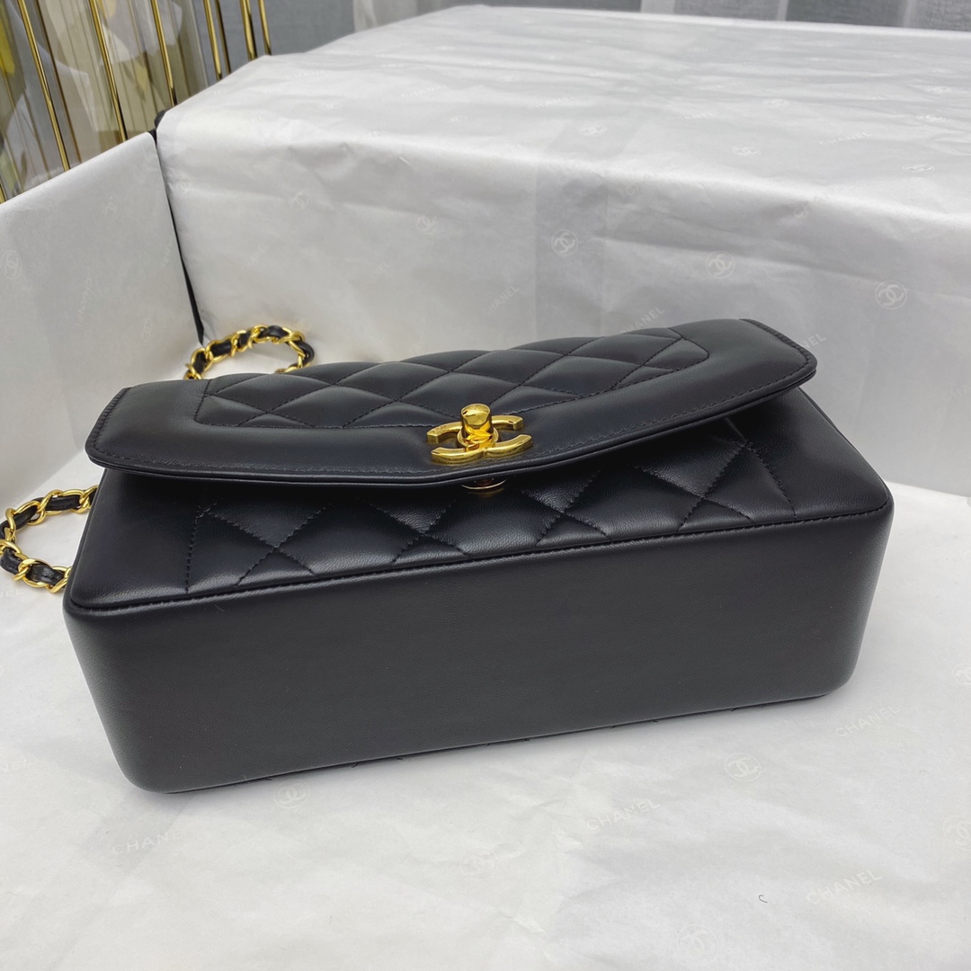 CHANEL BLACK QUILTED LAMBSKIN LEATHER SMALL DIANA FLAP BAG MASTER QUALITY
