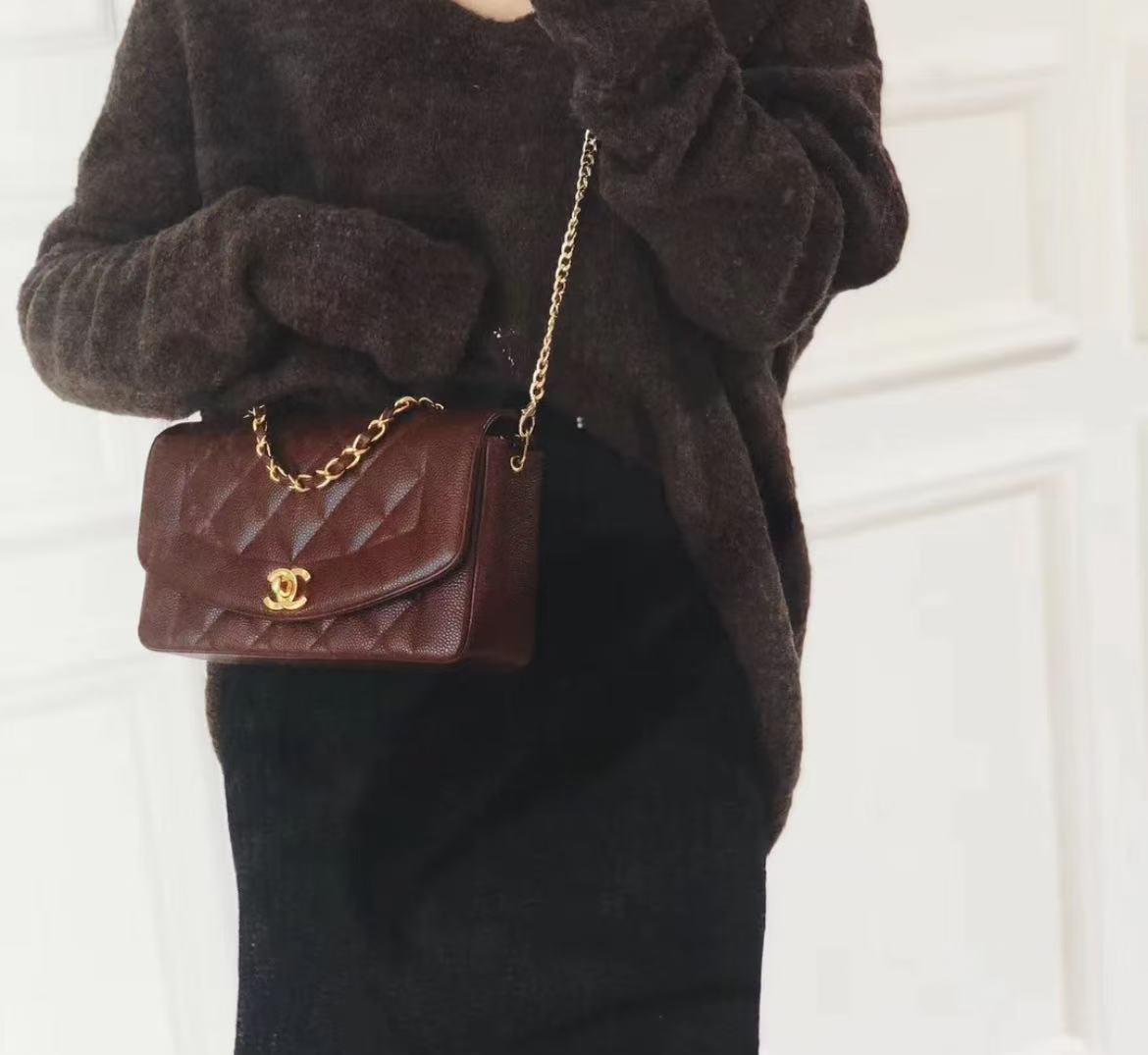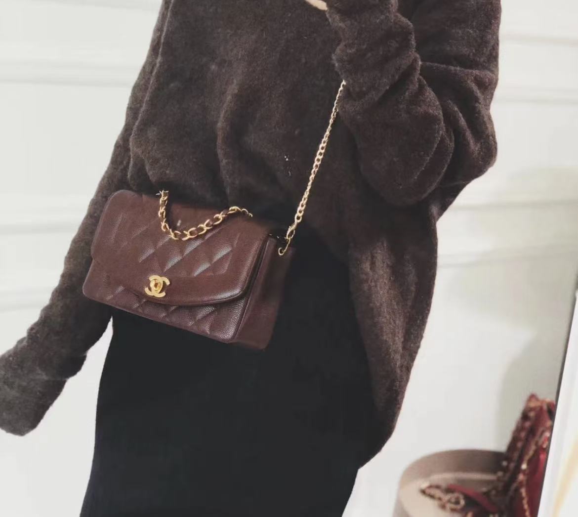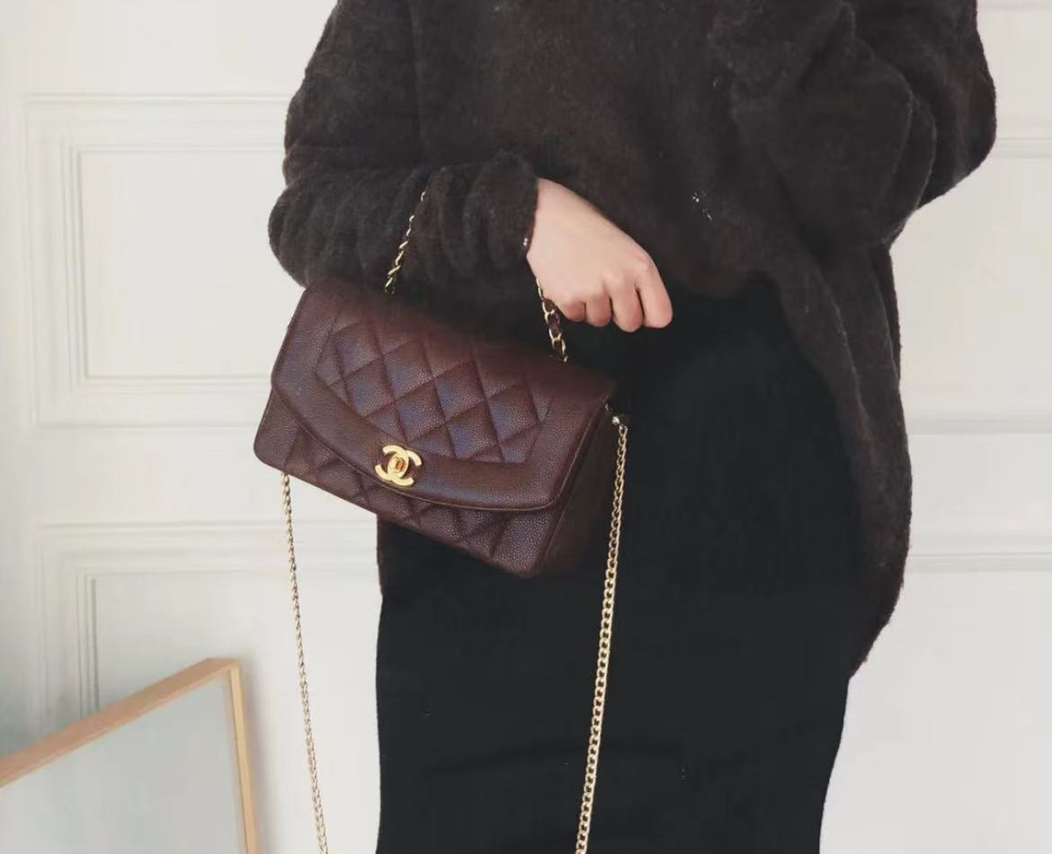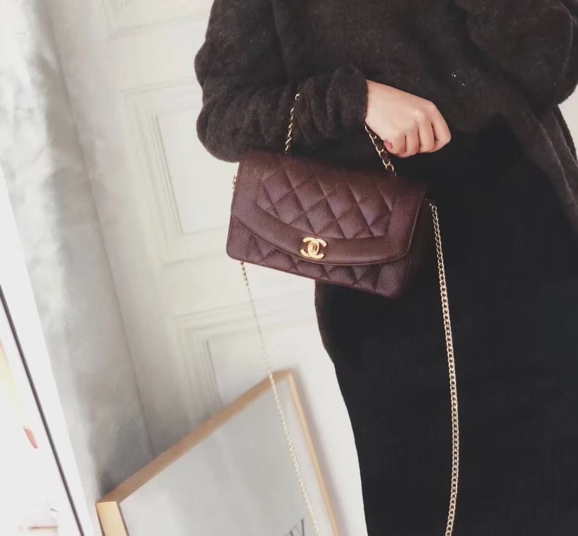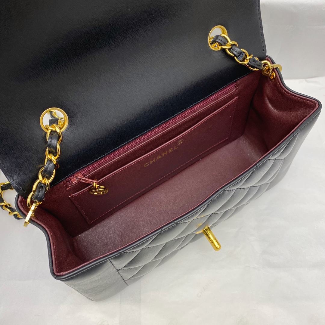 CHANEL BLACK QUILTED LAMBSKIN LEATHER SMALL DIANA FLAP BAG MASTER QUALITY