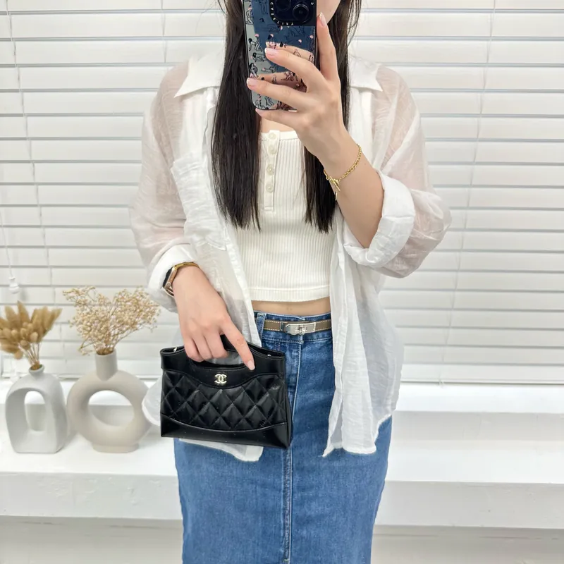 CHANEL 31 NANO GOLD CC LOGO SHINY LAMBSKIN CHAIN BAG AP3656 MASTER QUALITY