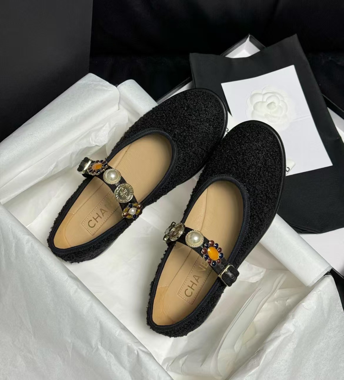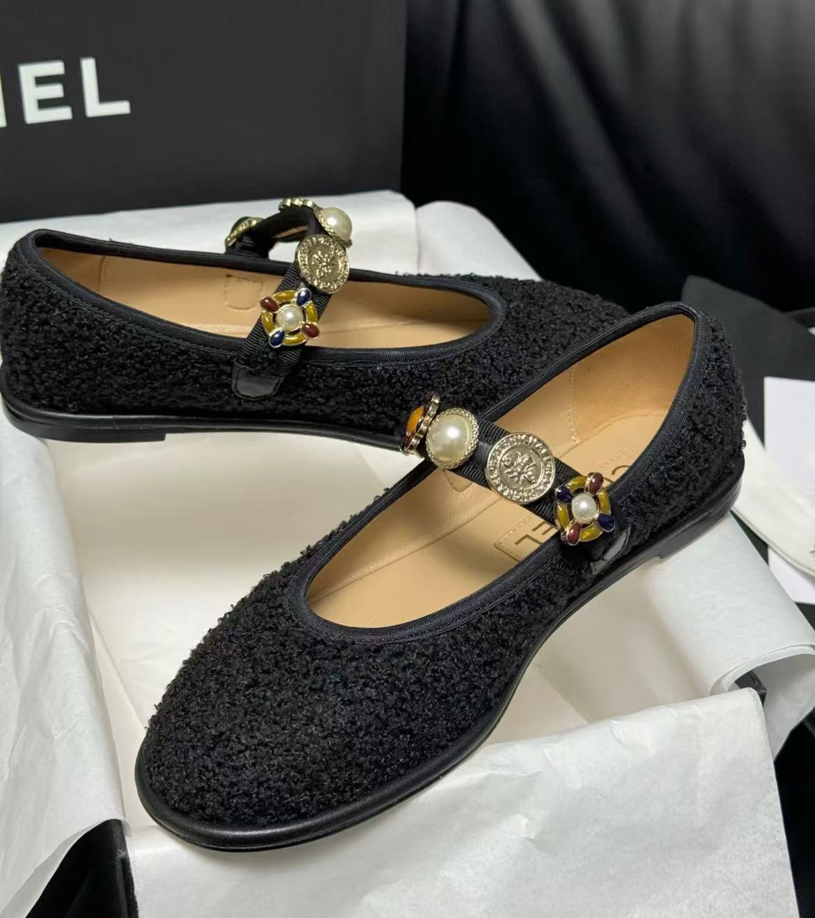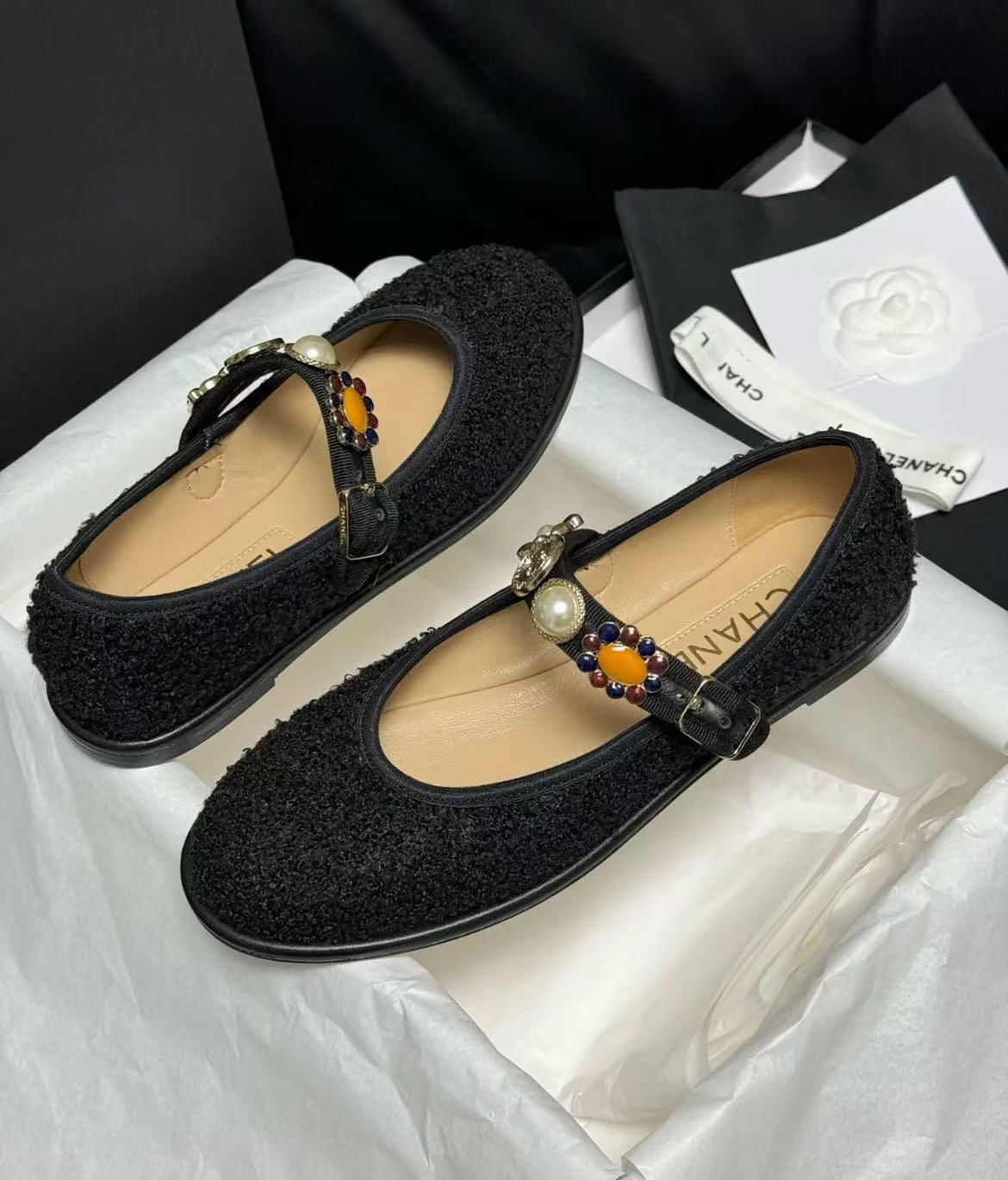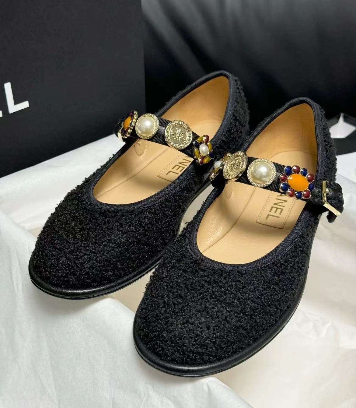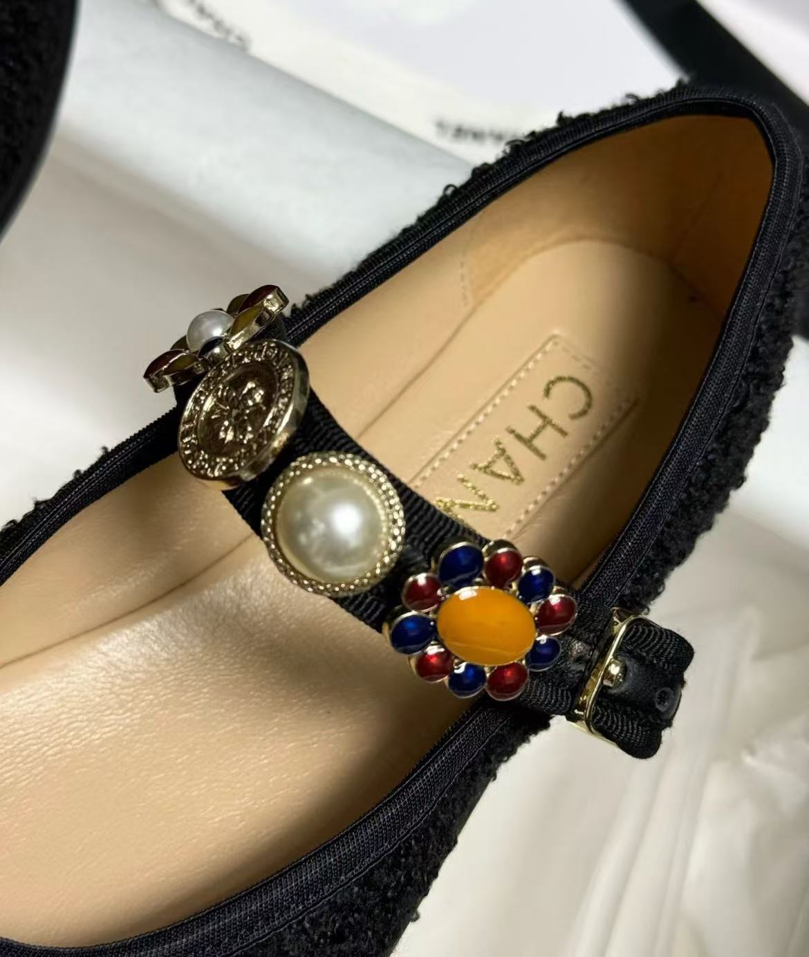 CHANEL MARY JANES FLAT SHOES WITH JEWEL AND PEARL MASTER QUALITY