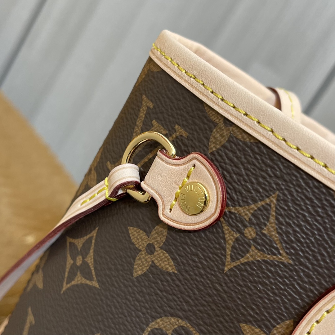 LOUIS VUITTON LV UNISEX NEVERFULL PM TOTE BROWN MONOGRAM COATED CANVAS COWHIDE M41245 MASTER QUALITY