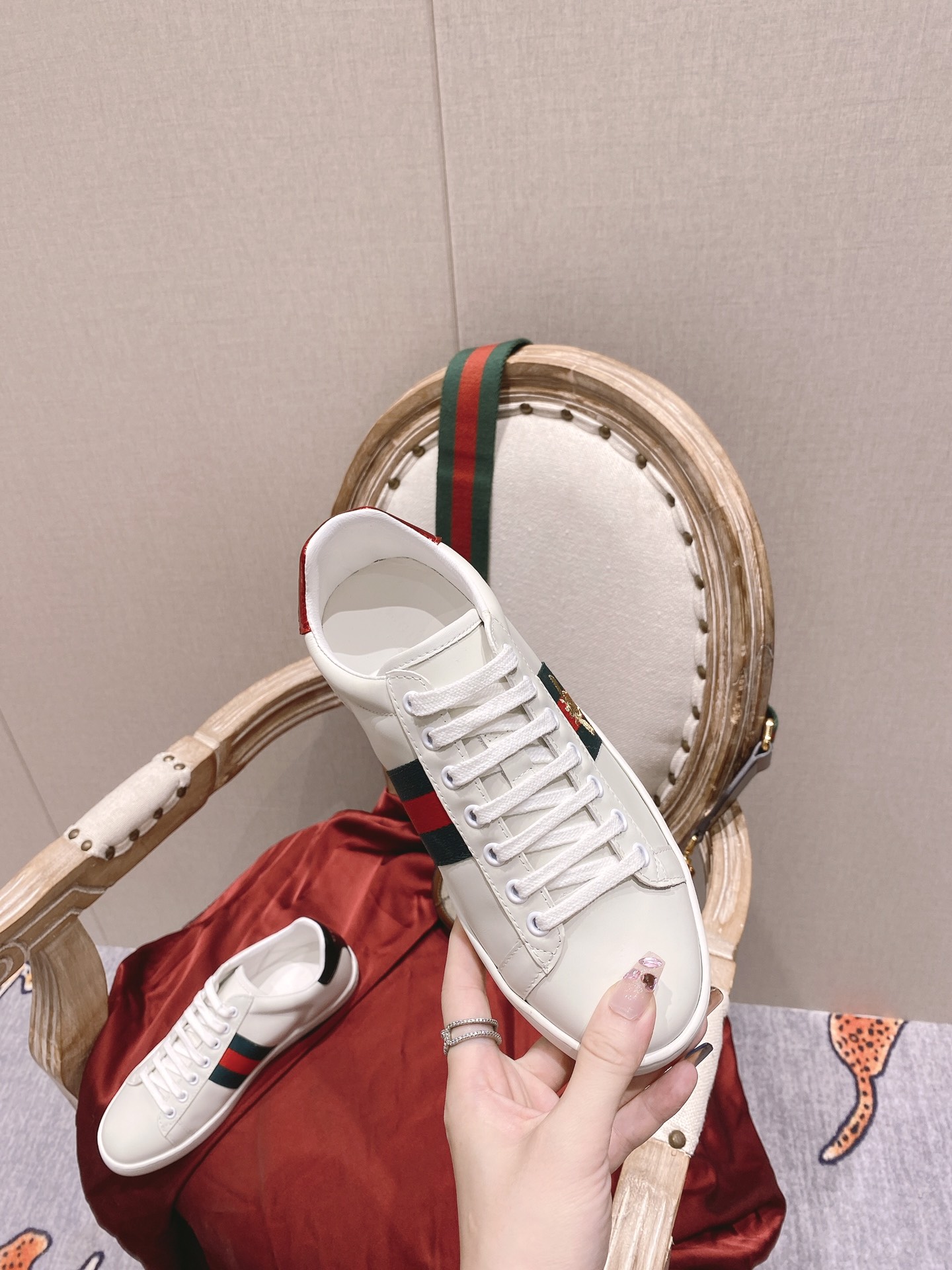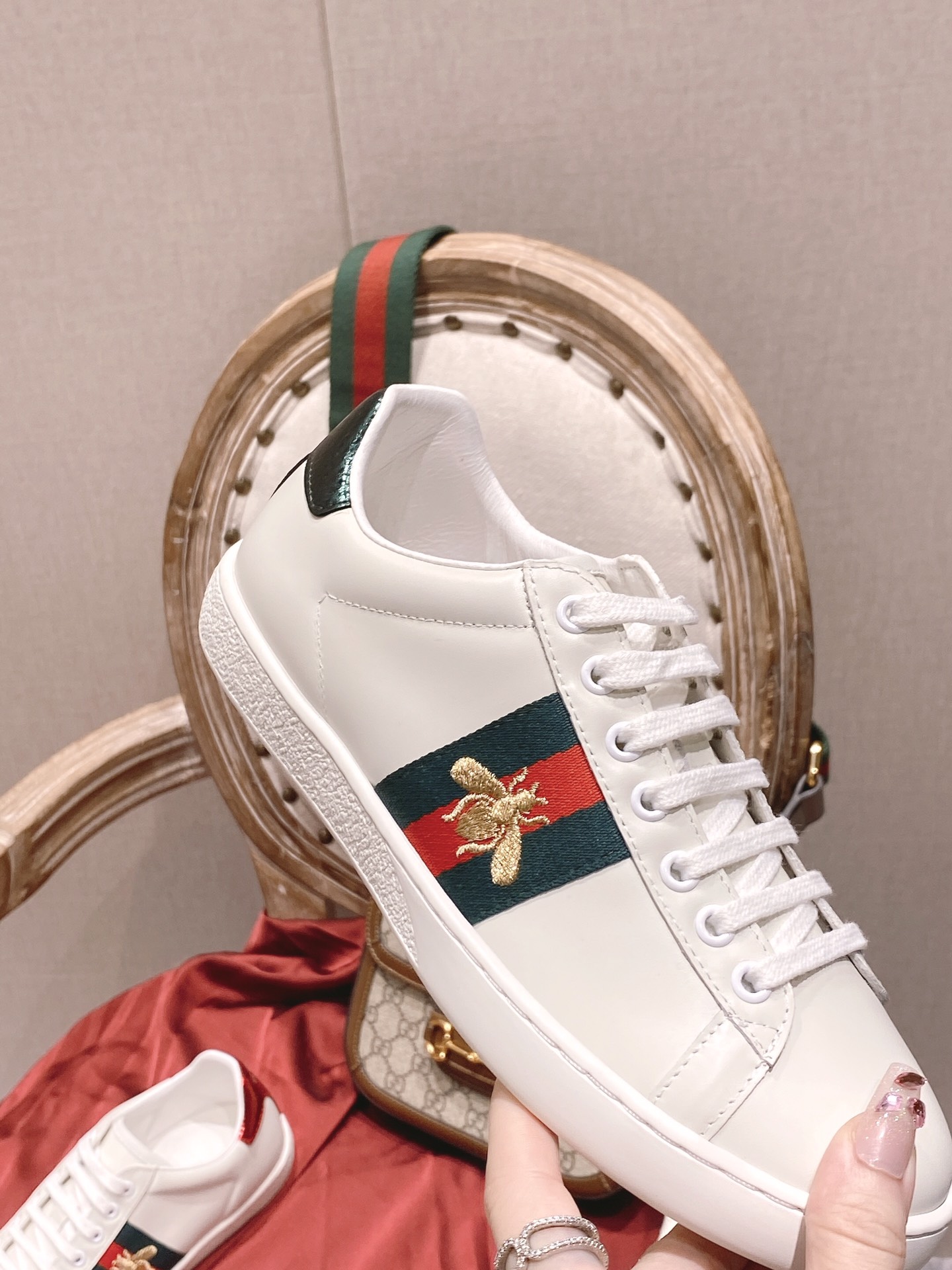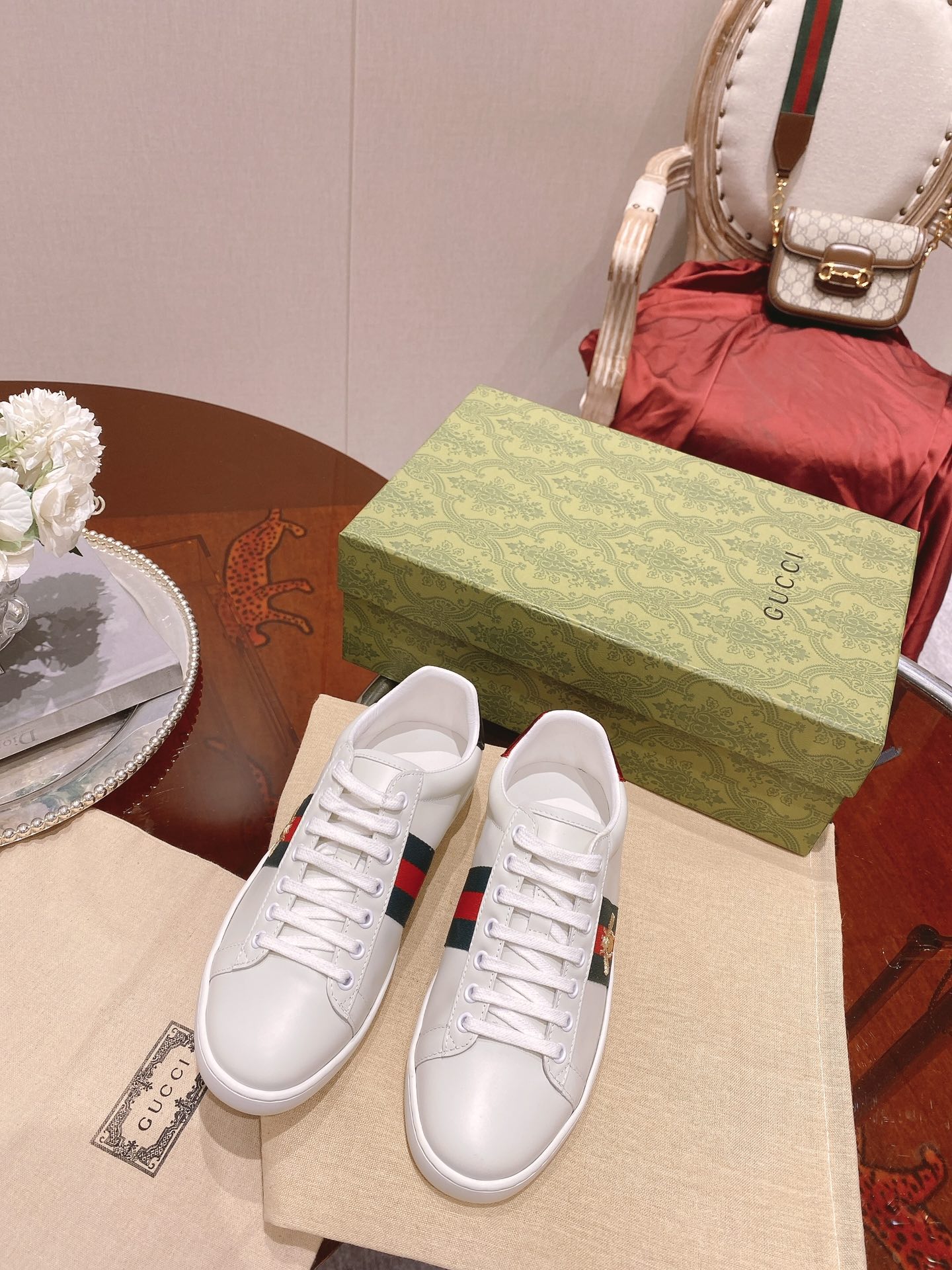 GUCCI UNISEX ACE LEATHER SNEAKER WHITE LEATHER WITH GREEN AND RED CROCODILE DETAIL MASTER QUALITY