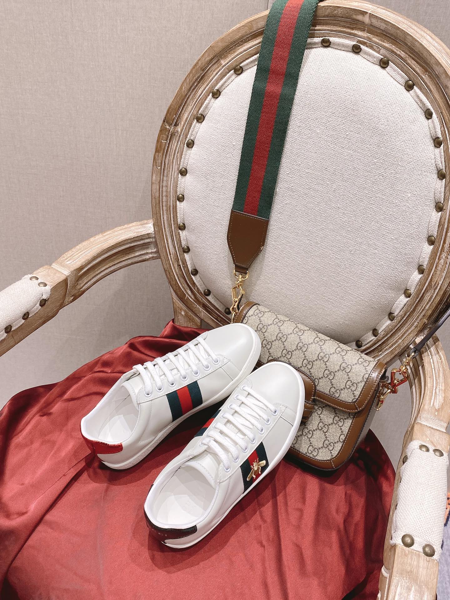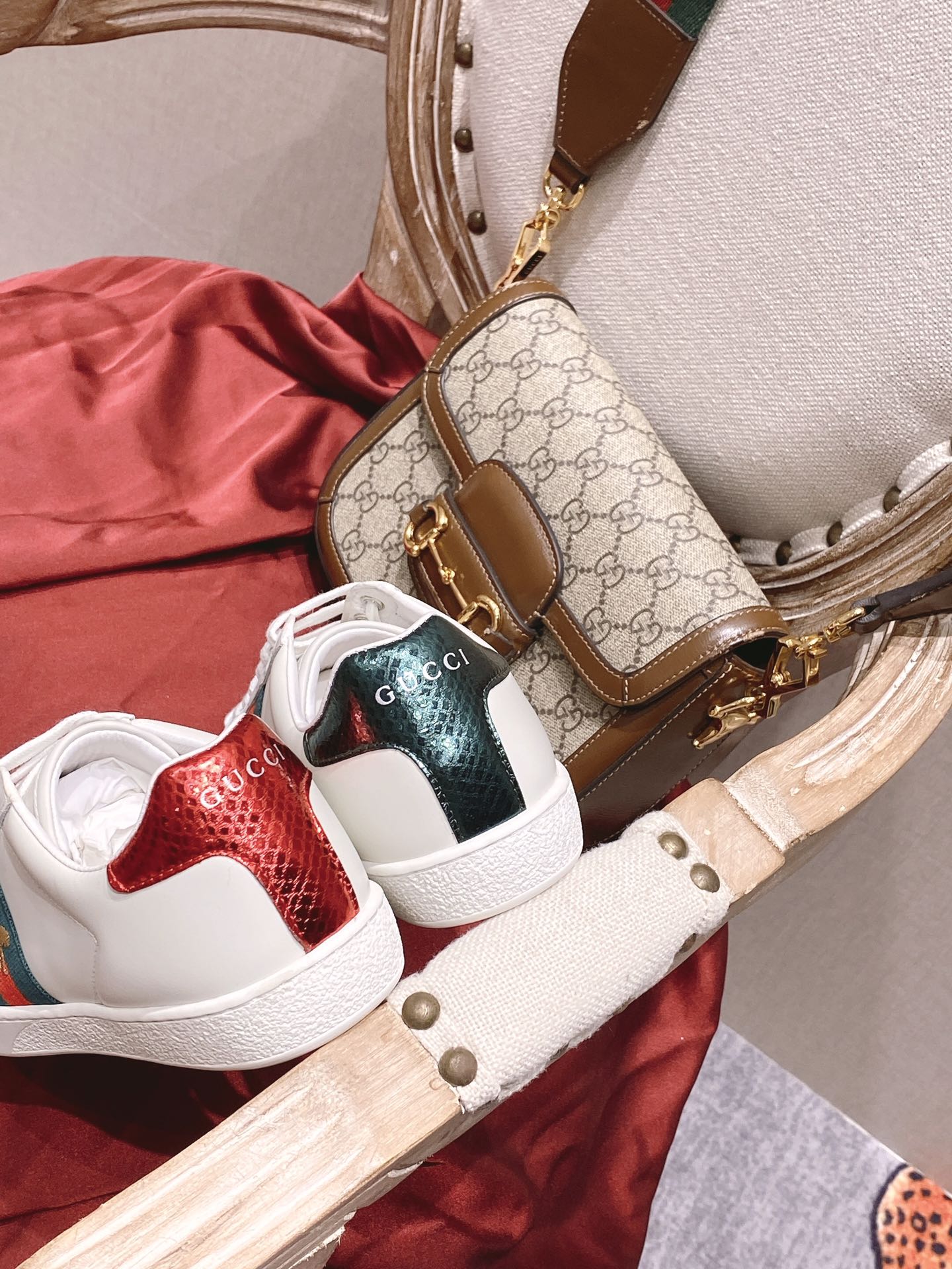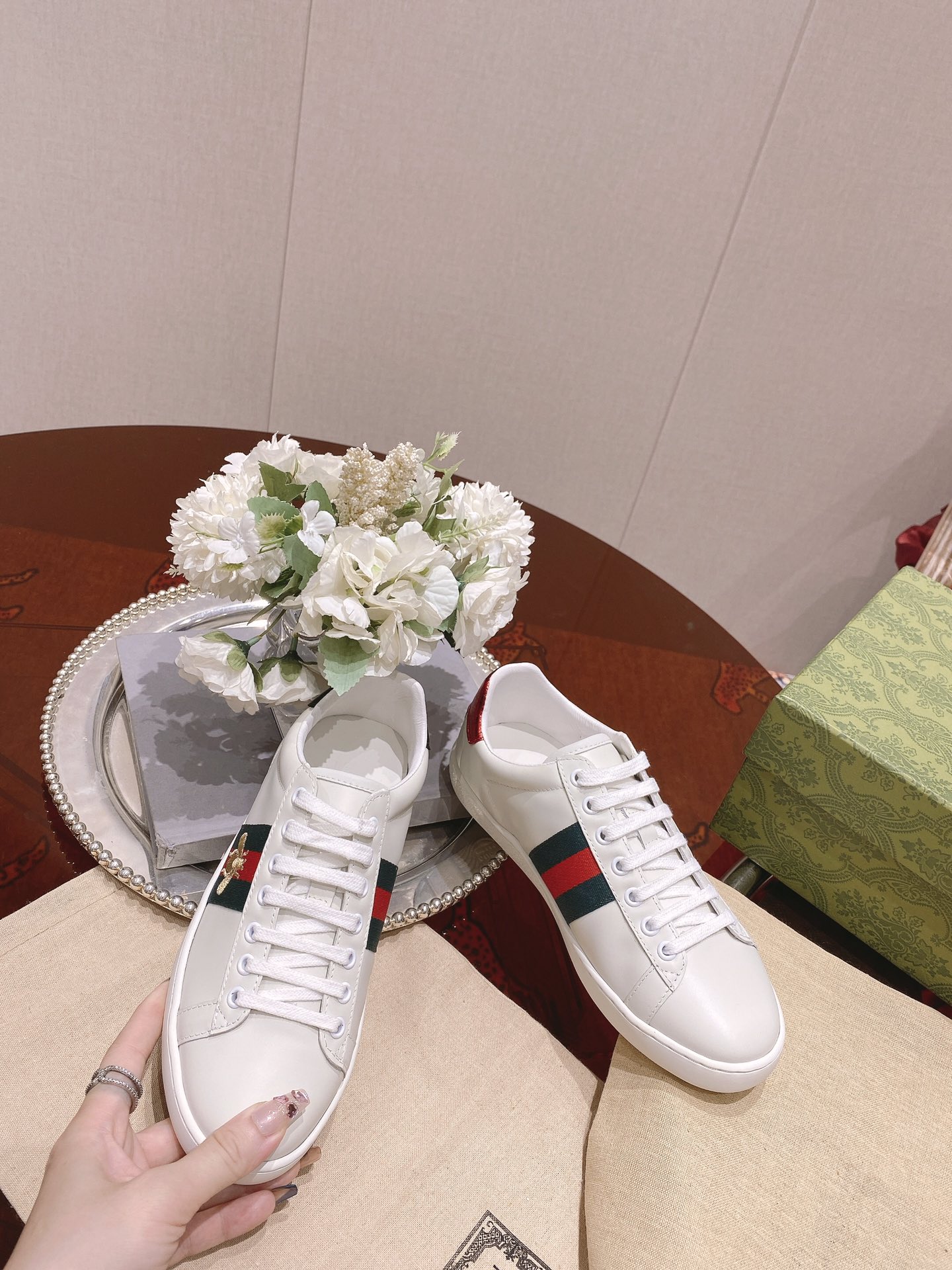 GUCCI UNISEX ACE LEATHER SNEAKER WHITE LEATHER WITH GREEN AND RED CROCODILE DETAIL MASTER QUALITY
