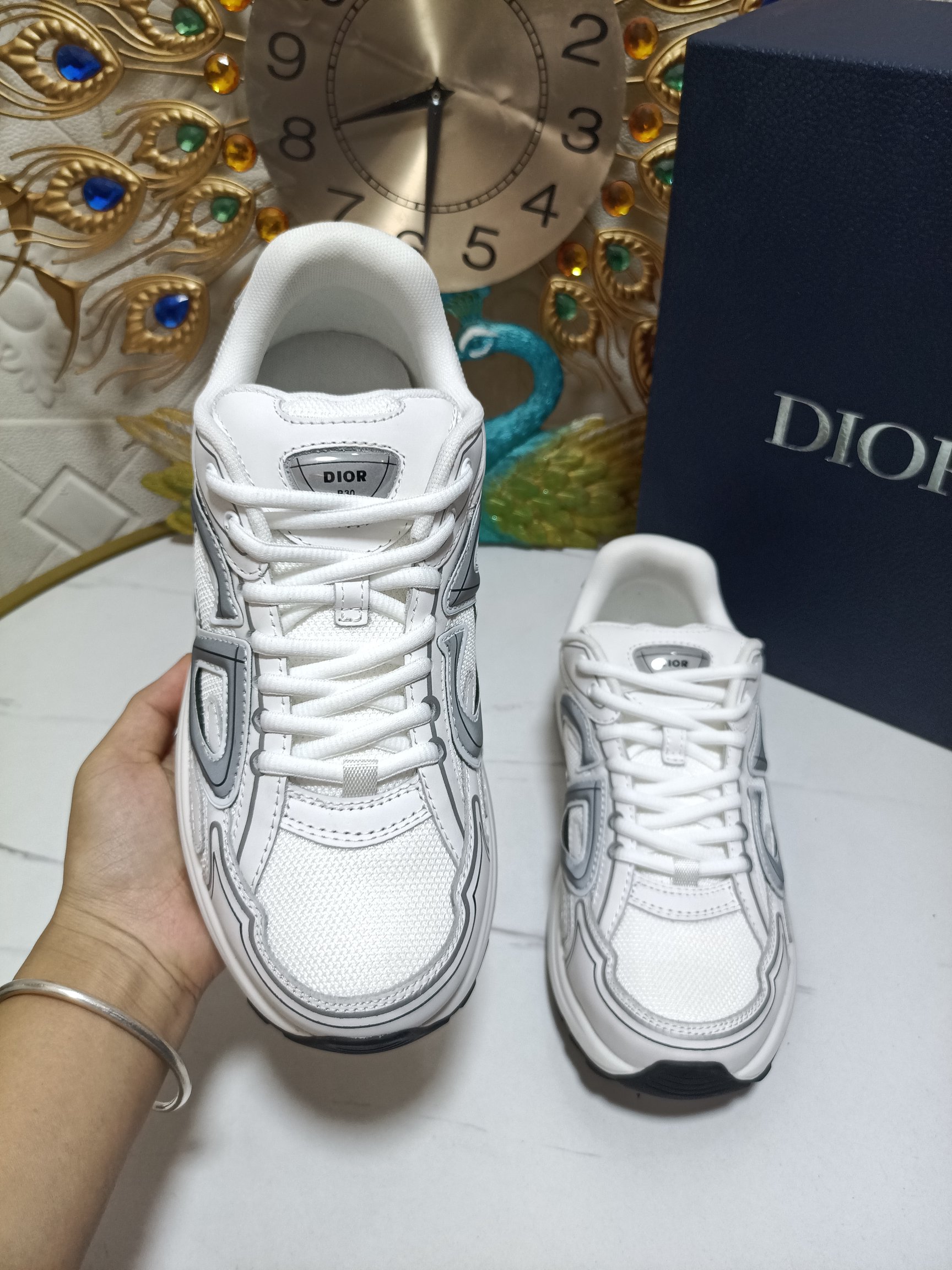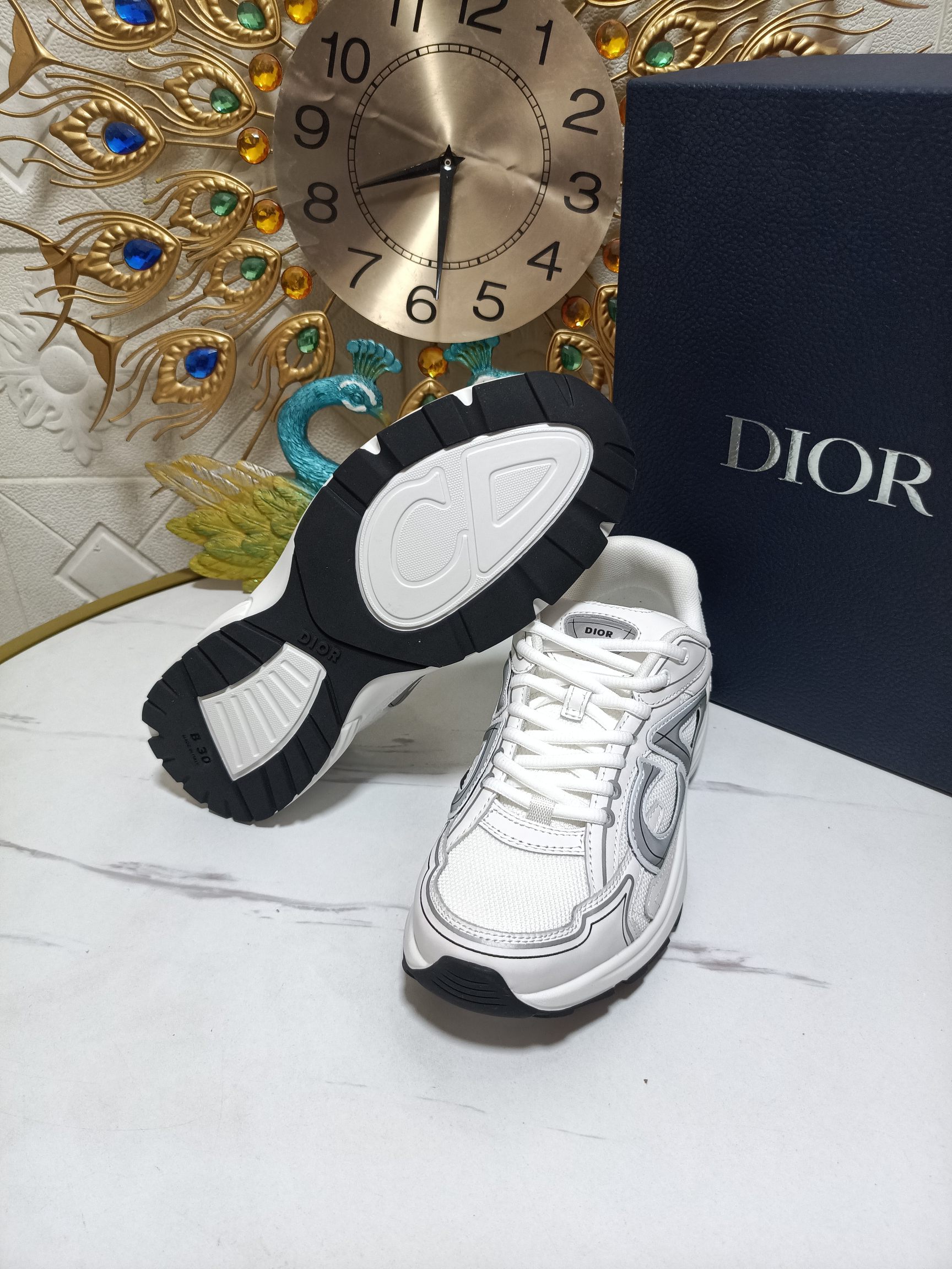 - The B30 also features silver-tone ‘DIOR B30’ and ‘CD30’ signatures on the tongue and the back of the sneaker.