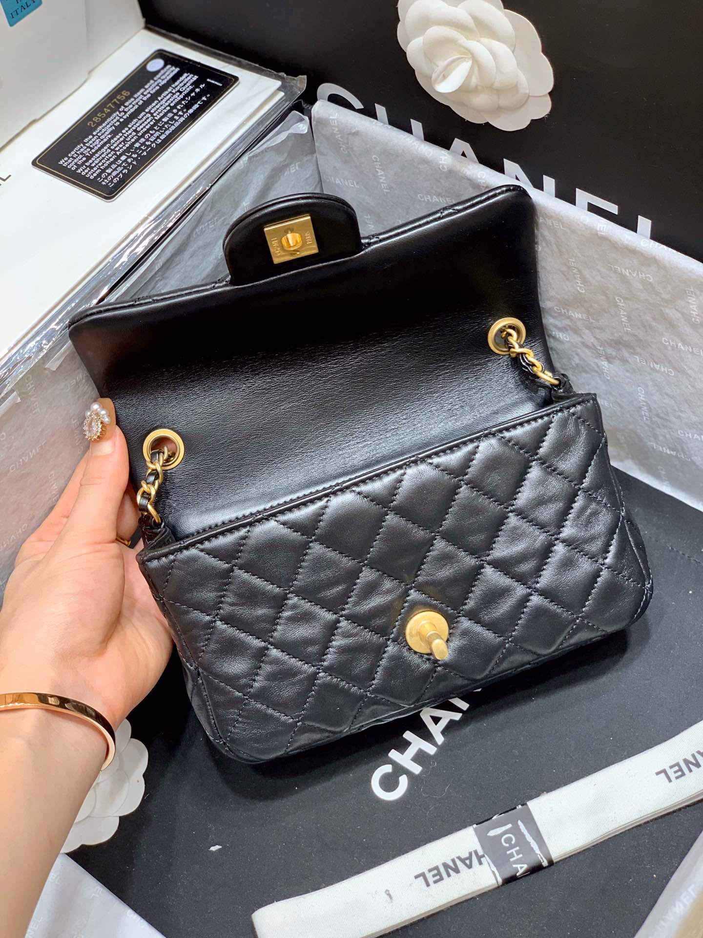 - flap bag Lambskin & Gold-Tone Metal