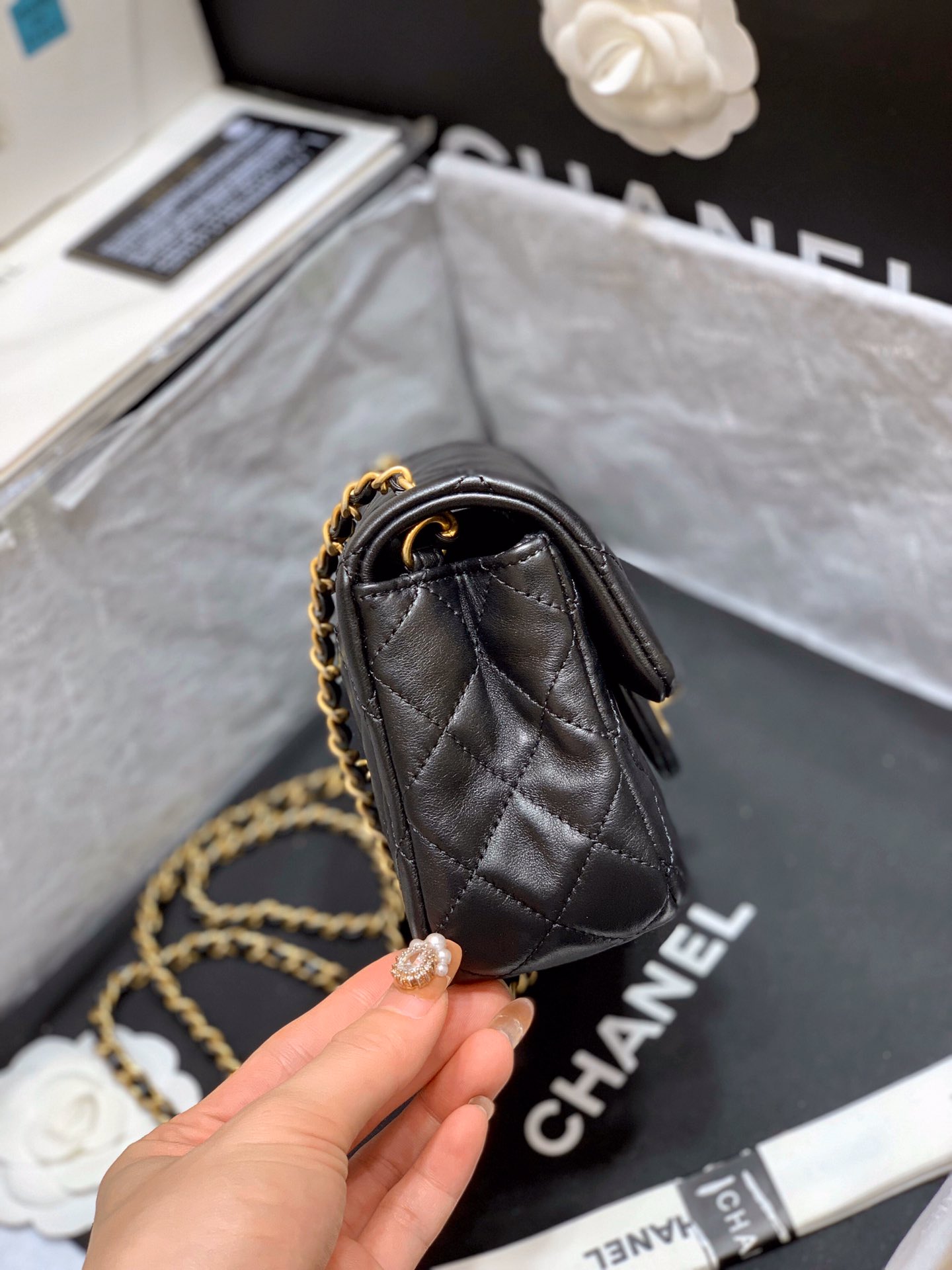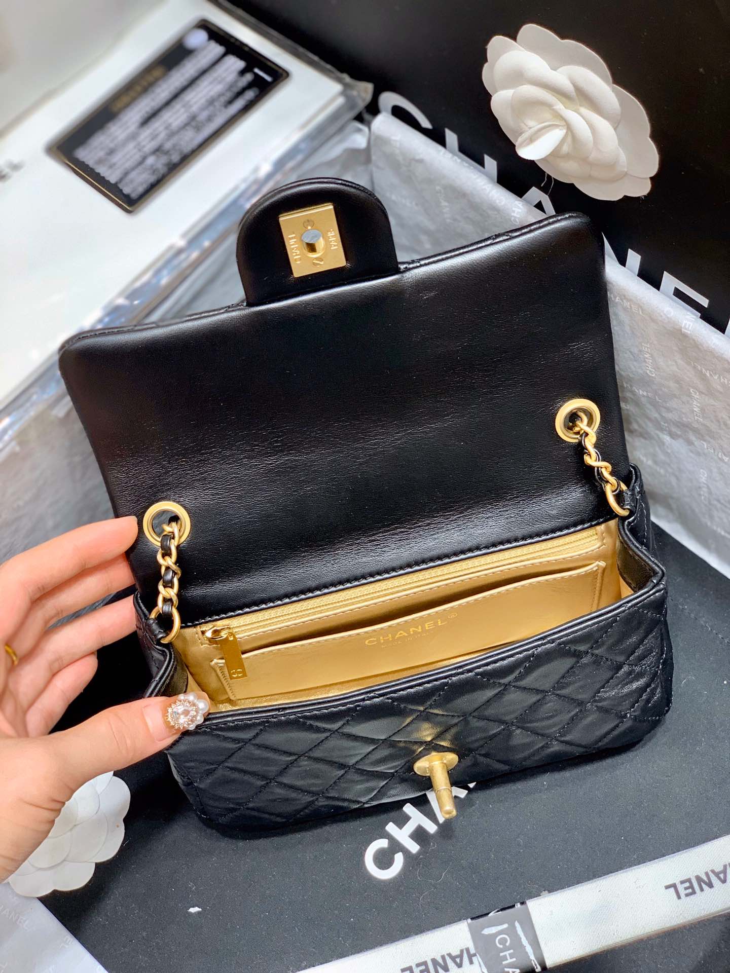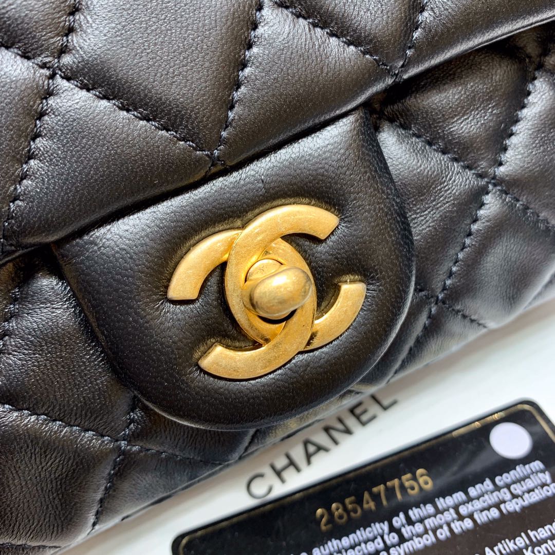 CHANEL WOMEN FLAP BAG LAMBSKIN & GOLD-TONE METAL-BLACK MASTER QUALITY