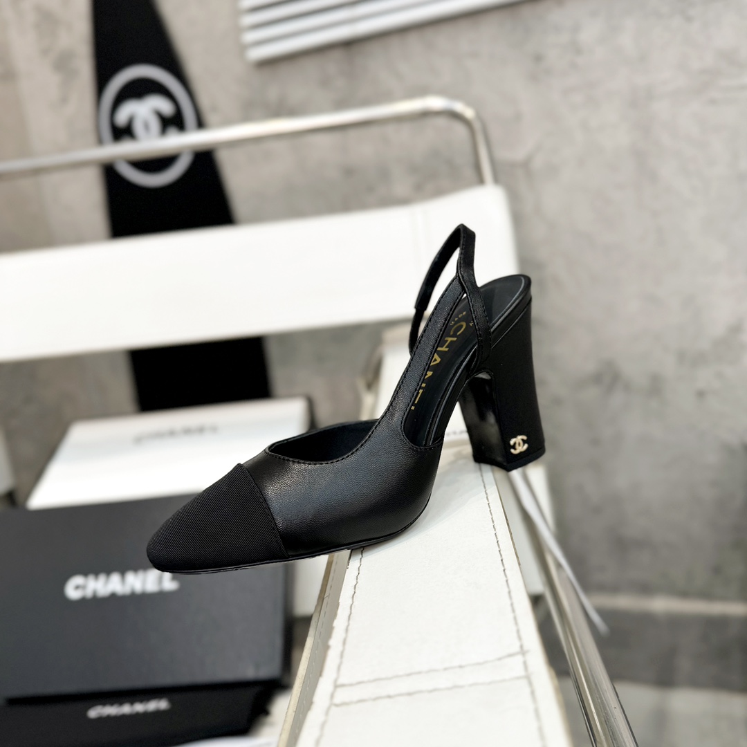 CHANEL WOMEN SLINGBACKS IN GOATSKIN & GROSGRAIN 6.5CM/9.5CM HEEL-SANDY MASTER QUALITY