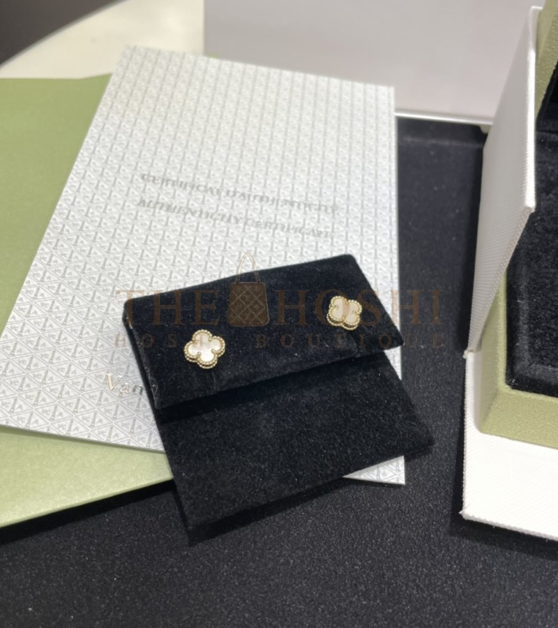 VAN CLEEF & ARPELS ALHAMBRA VINTAGE EARRINGS MINI 18K YELLOW GOLD/WHITE MOTHER-OF-PEARL MASTER QUALITY
