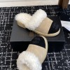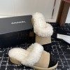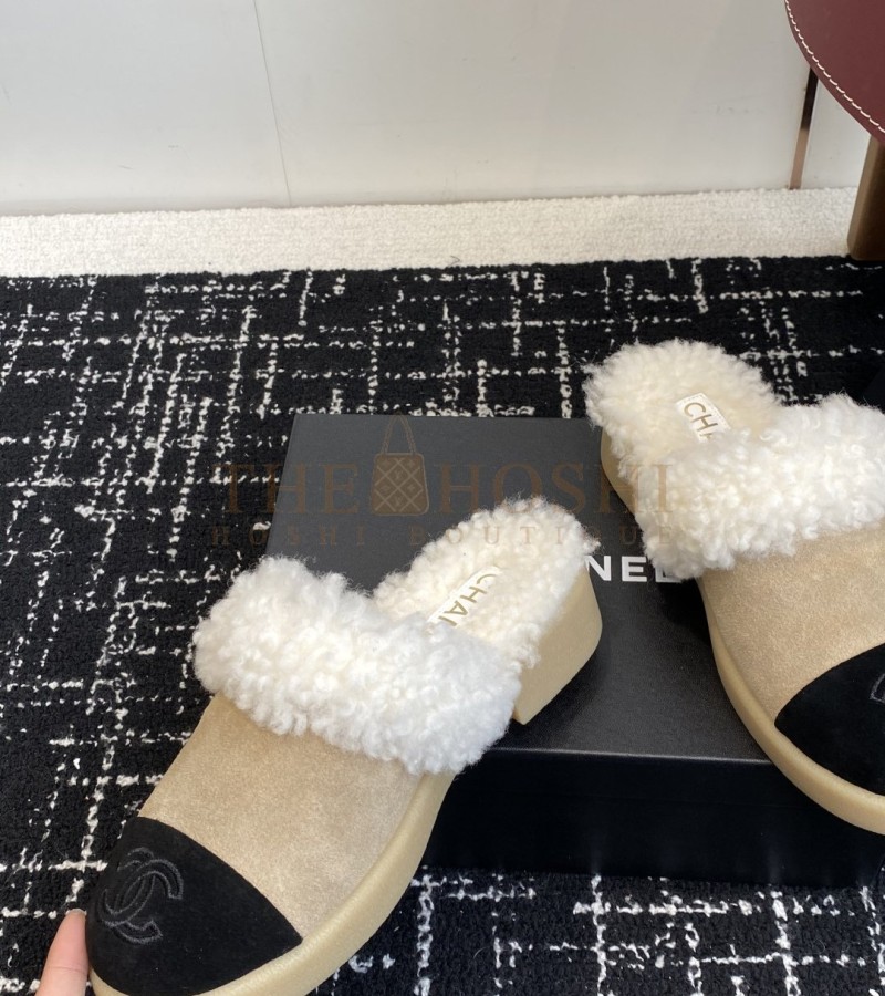 CHANEL SHEARLING LOGO SLIDES WOOL PLATFORM