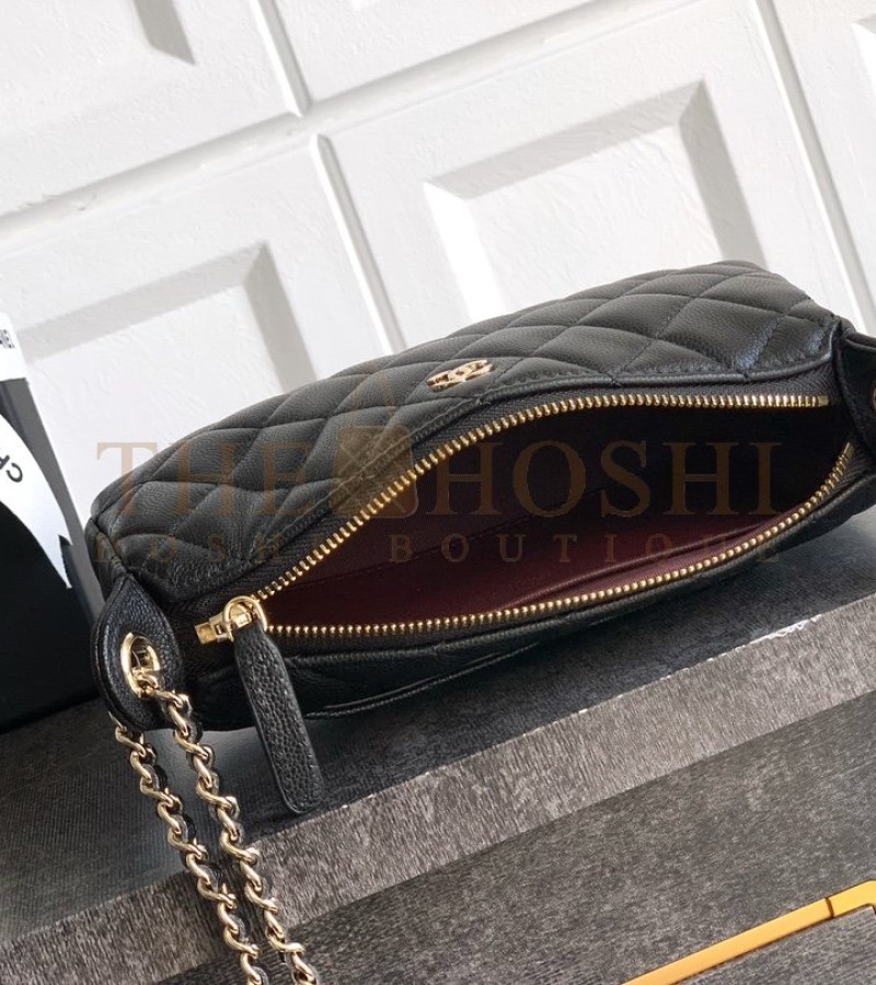 CHANEL 25A CLUTCH ON CHAIN BAG BLACK CAVIAR LEATHER SIZE 21×12×5.5CM