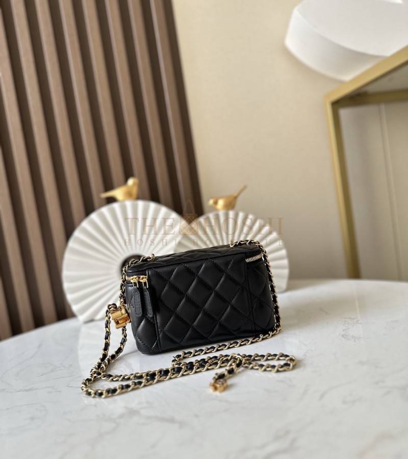 CHANEL LAMSKIN LEATHER VANTITY CASE WITH CHAIN BLACK SIZE 17X9.5X8CM MASTER QUALITY