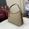 GUCCI GG EMBLEM FALL COLLECTION BEIGE EBONY GG CANVAS SHOULDER BAG 30×19×11CM MASTER QUALITY