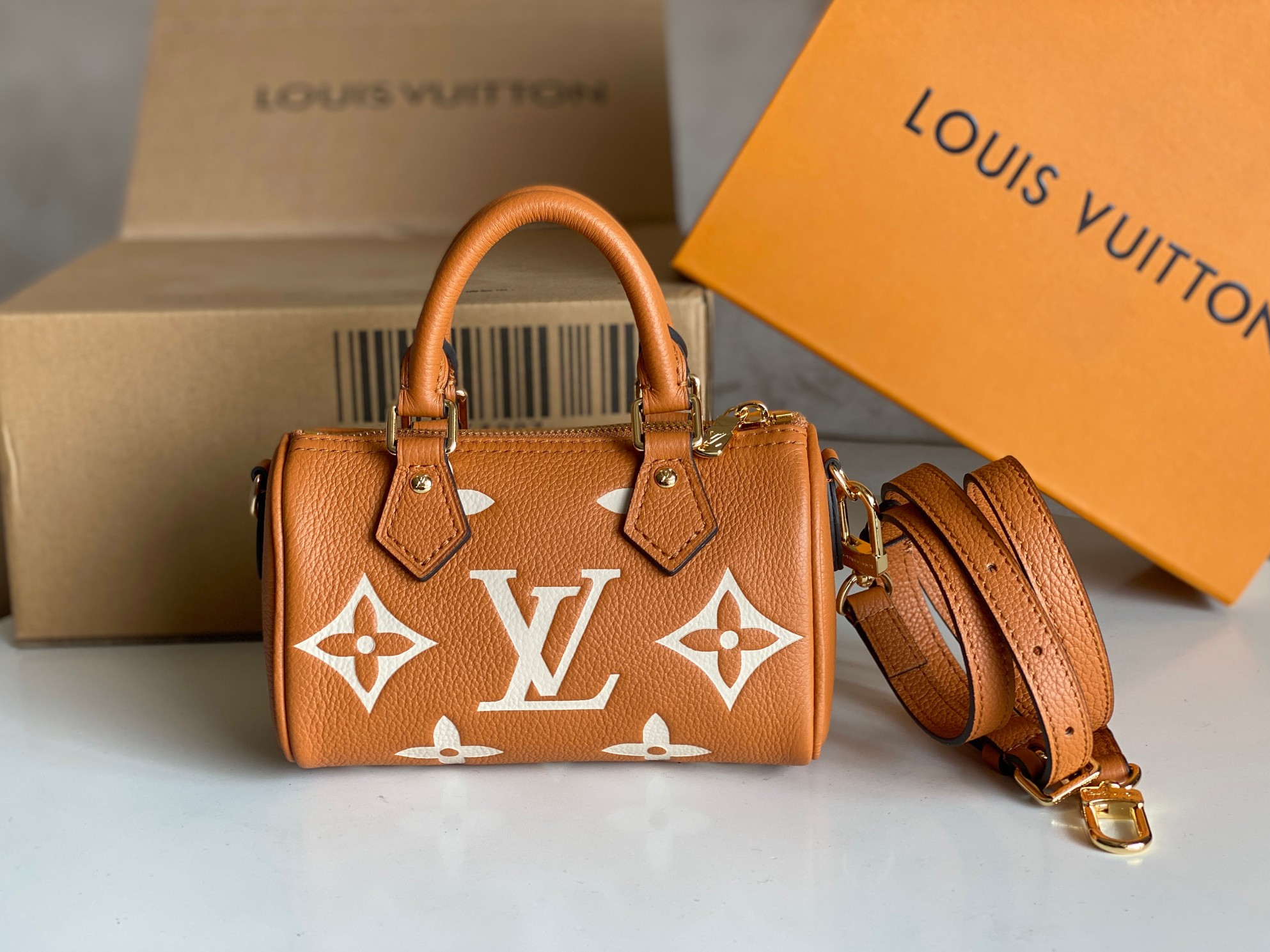 LOUIS VUITTON LV WOMEN NANO SPEEDY BAG MONOGRAM EMPREINTE EMBOSSED SUPPLE GRAINED COWHIDE LEATHER MASTER QUALITY