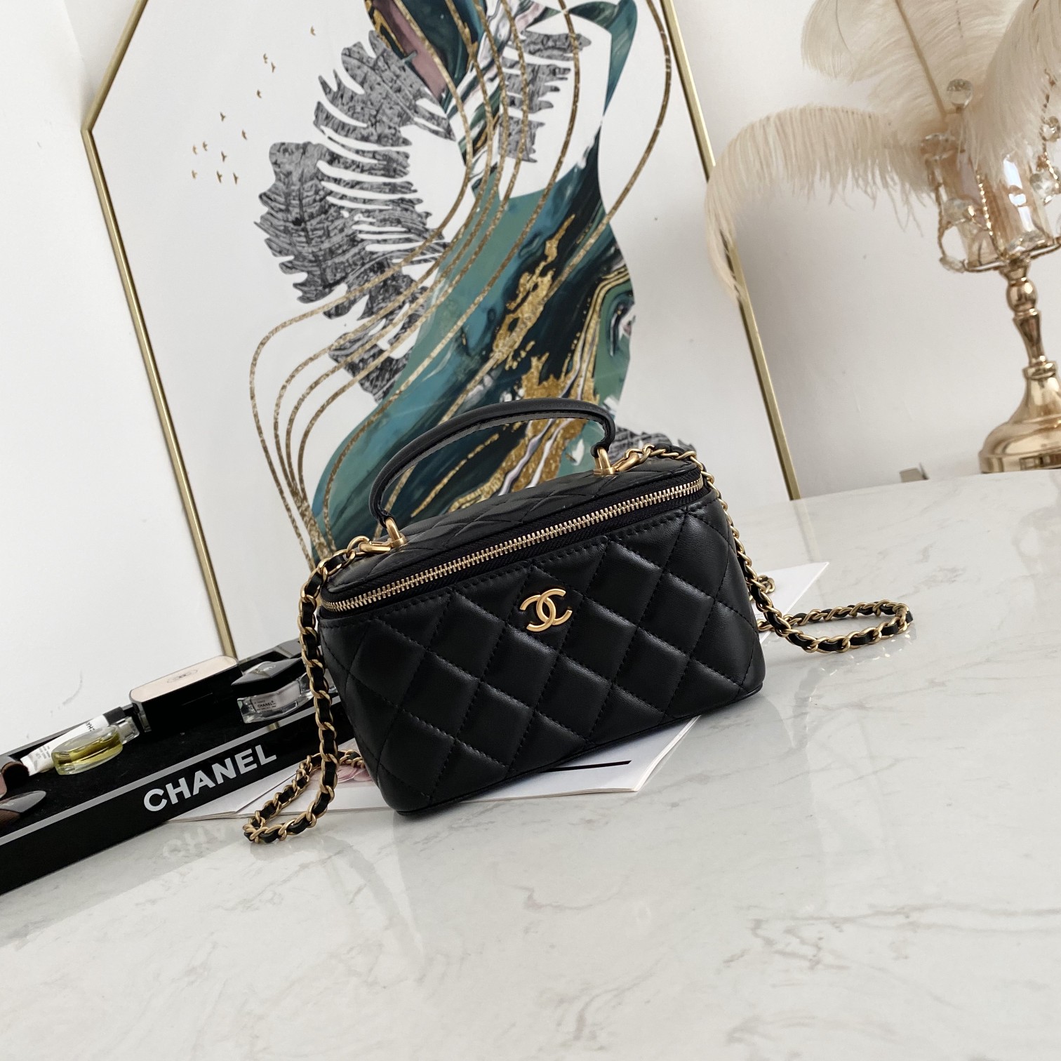 CHANEL MAKEUP BAG LIGHT GOLD BUCKLE MASTER QUALITY