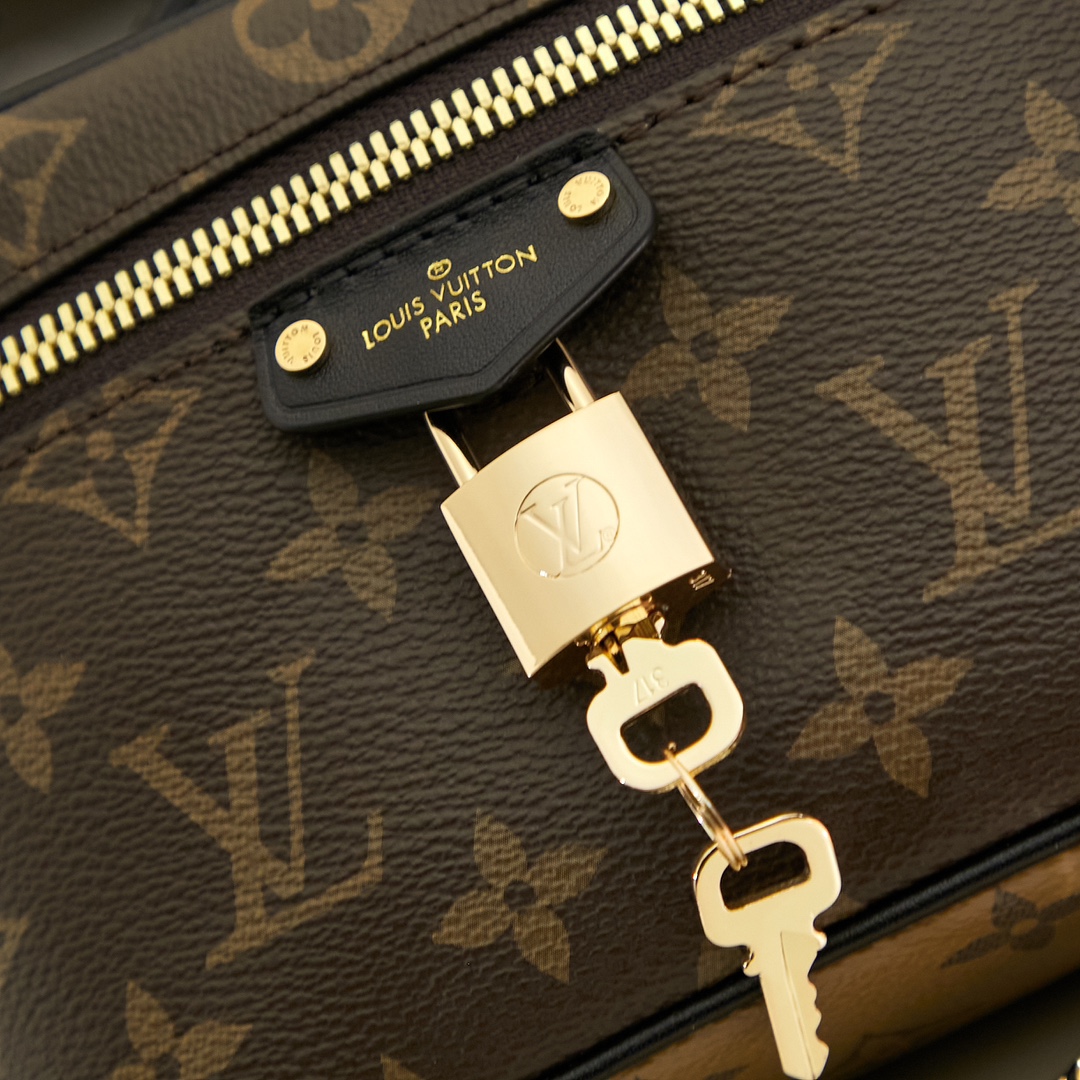 - It is notable for its rich signature details, including an LV-engraved padlock and a leather key bell.