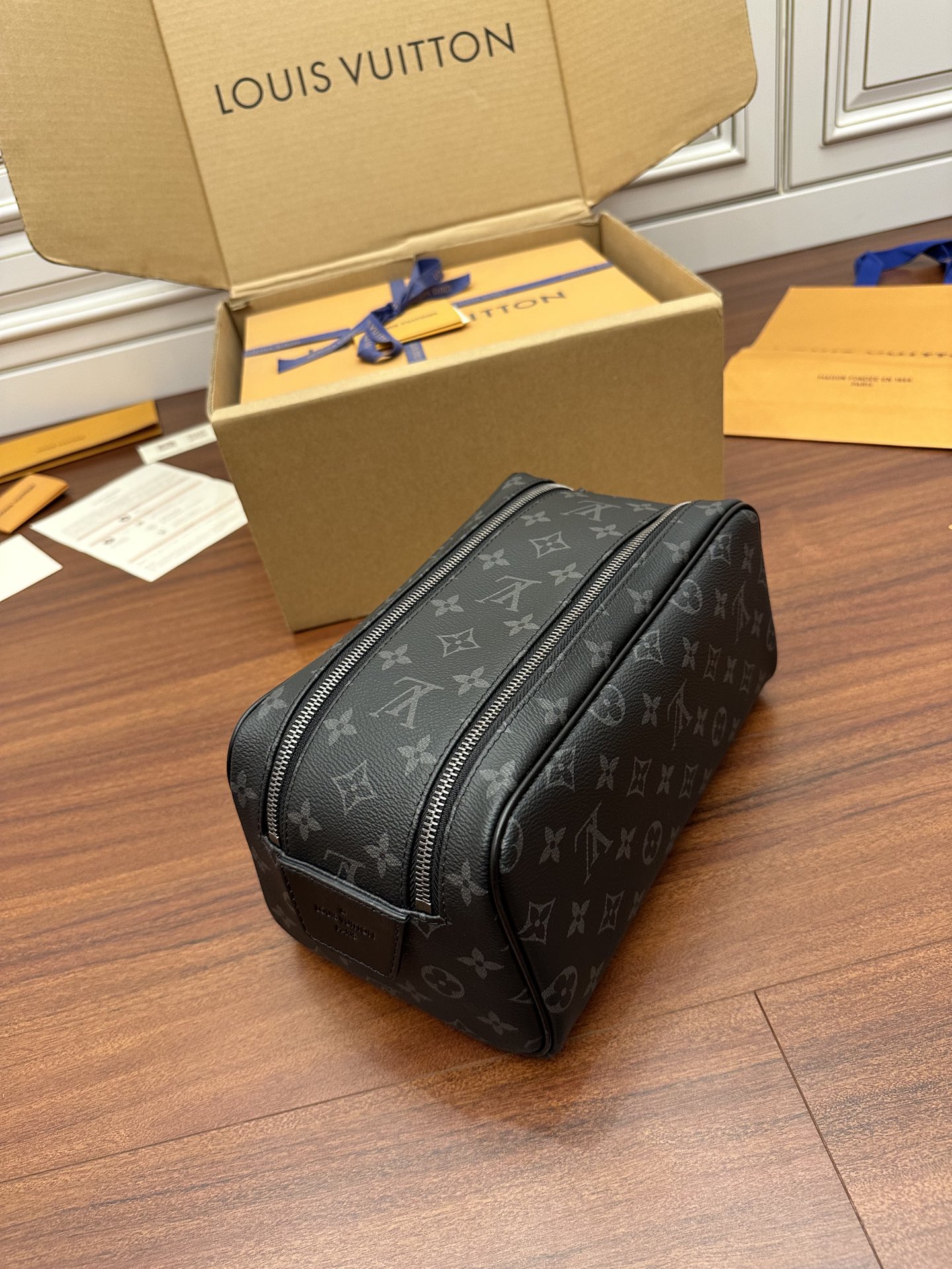 LOUIS VUITTON LV UNISEX DOPP KIT TOILET POUCH MONOGRAM ECLIPSE COATED CANVAS M44494 N40127 M46354 M46696 MASTER QUALITY