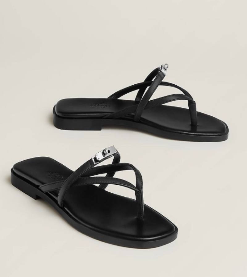 HERMES MISS SANDALS BLACK BOX CALFSKIN LEATHER MASTER QUALITY
