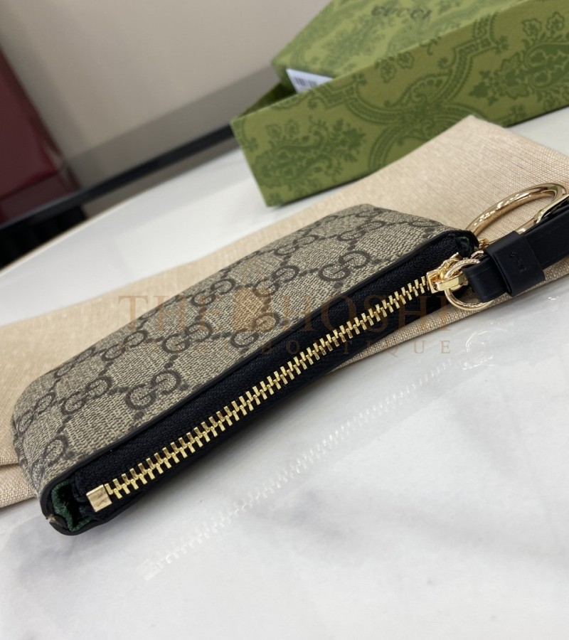 GUCCI GG EMBLEM WRISTLET CARD CASE BEIGE/BROWN CANVAS LEATHER 12X7.5CM MASTER QUALITY