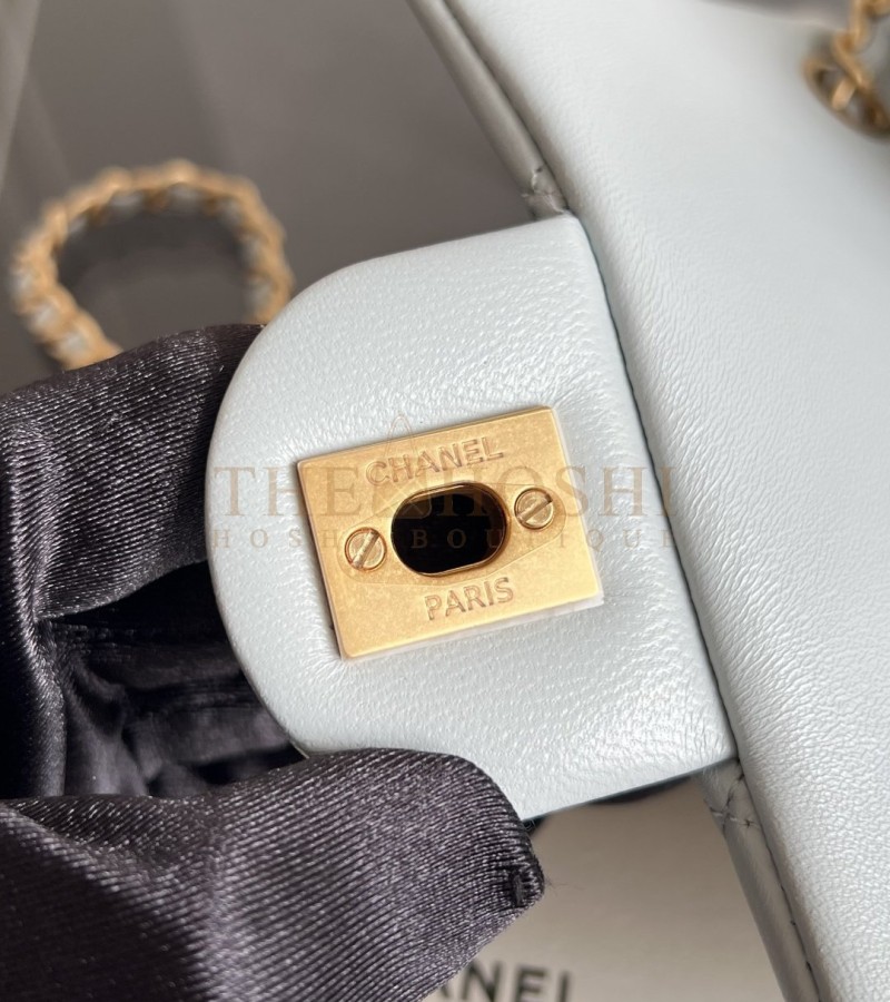 CHANEL CLASSIC FLAP SMALL BAG (AS1786) GLACIER BLUE GOATSKIN VINTAGE GOLD HARDWARE 13×18×7CM MASTER QUALITY