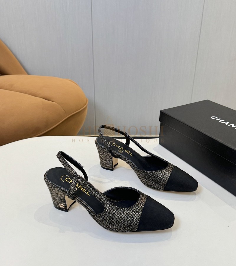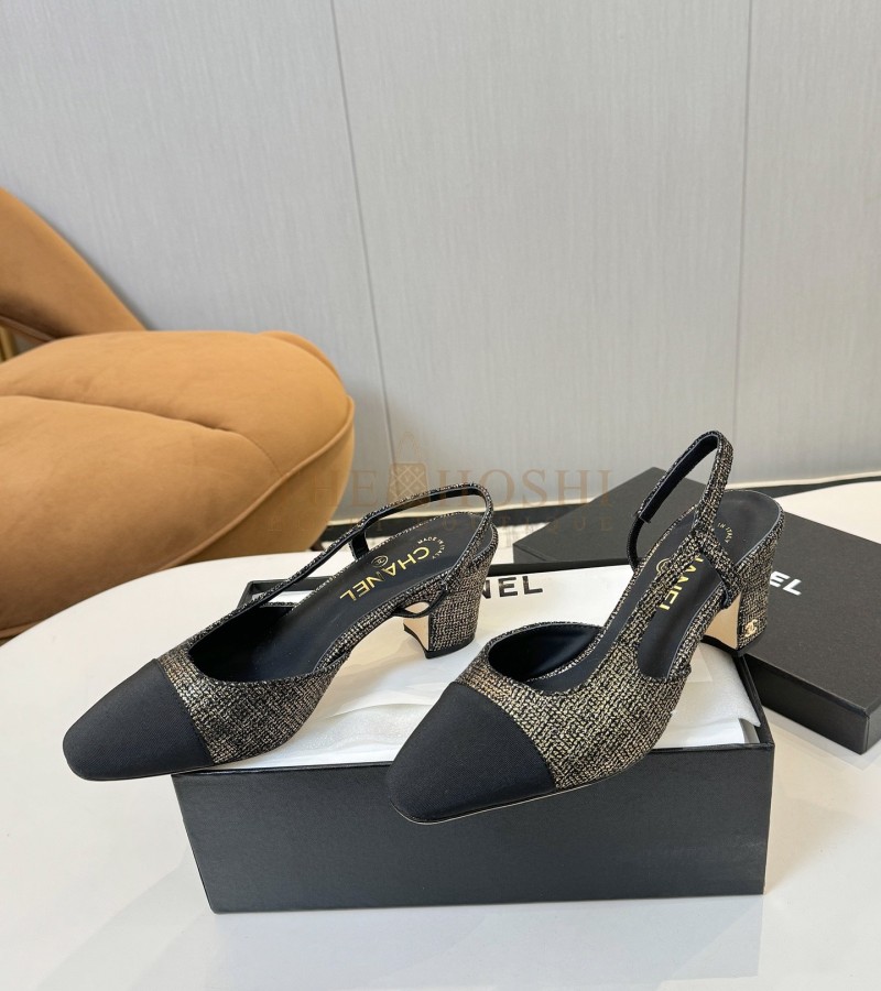 CHANEL SLINGBACK HEELS LAMBSKIN & CALFSKIN HEEL 6.5CM