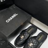 CHANEL QUILTED SLIP-ON BLACK LOAFER MULES LAMSKIN LEAHER