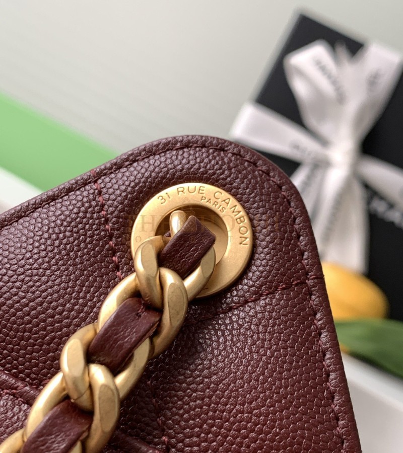 CHANEL 25C HOBO AS5631 HOBO DRAWSTRING BAG BURGUNDY LEATHER WITH GOLD CHAIN 22*12.5*20CM MASTER QUALITY