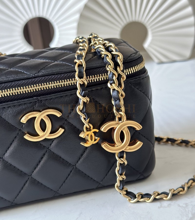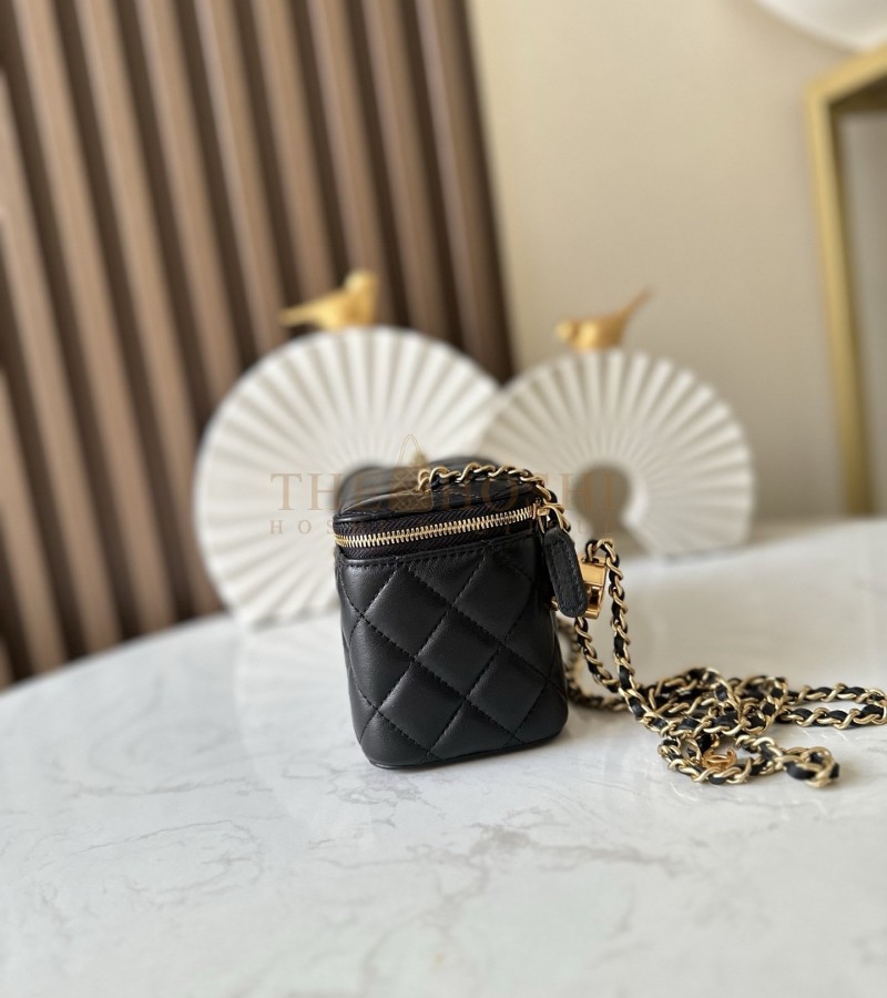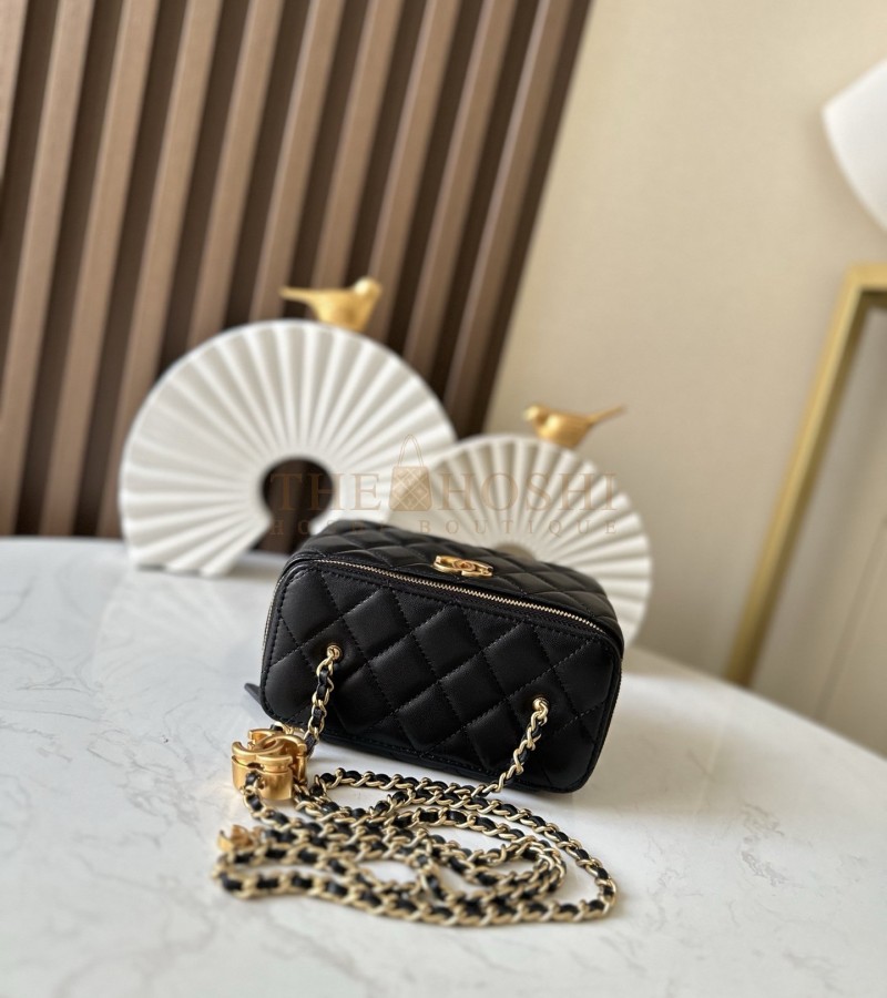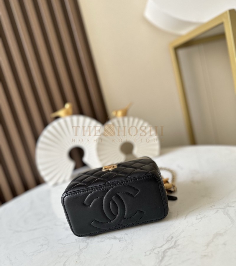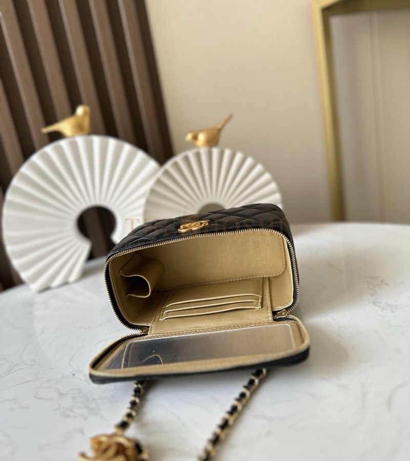 CHANEL LAMSKIN LEATHER VANTITY CASE WITH CHAIN BLACK SIZE 17X9.5X8CM MASTER QUALITY