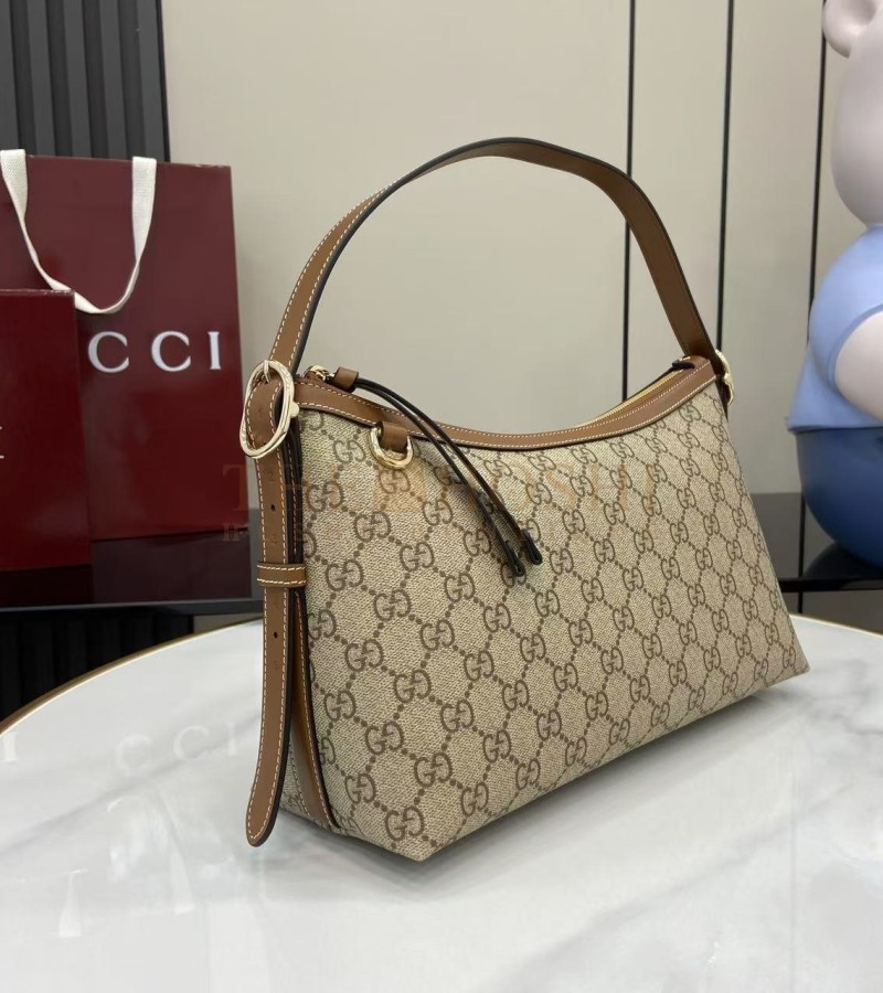GUCCI GG EMBLEM FALL COLLECTION BEIGE EBONY GG CANVAS SHOULDER BAG 30×19×11CM MASTER QUALITY